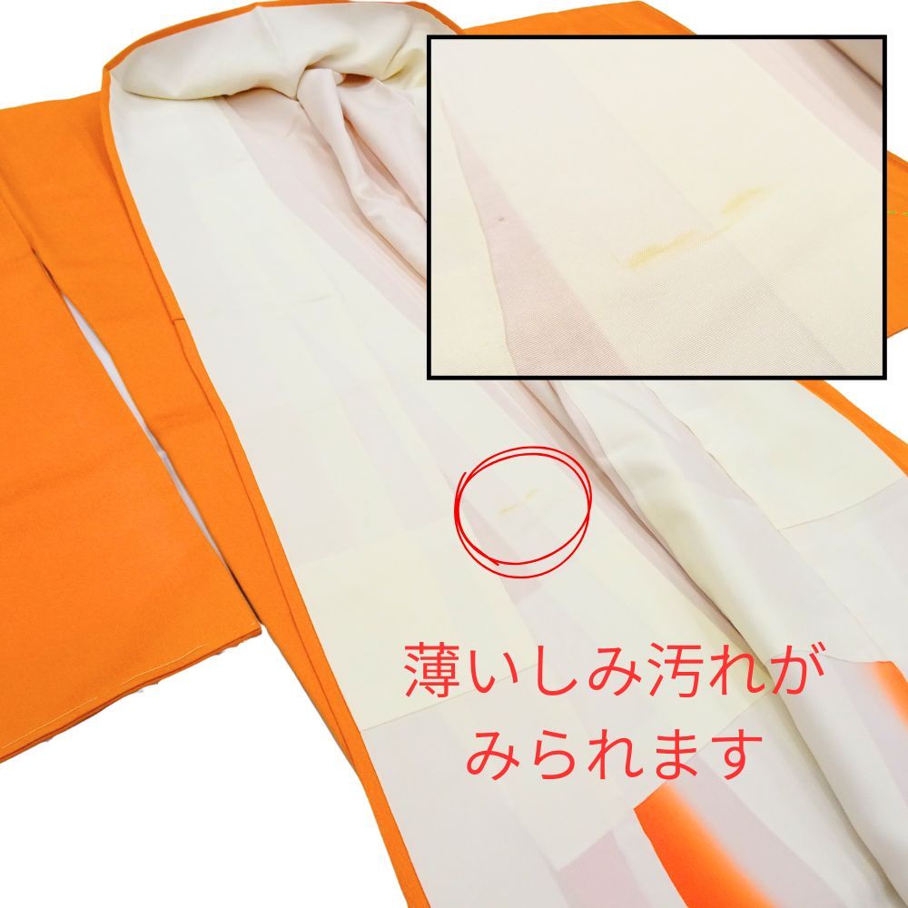 附下 袷 正絹 リユース 中古 華やかな橙×黄緑 友禅染め K10-005-9 (8050-00618)