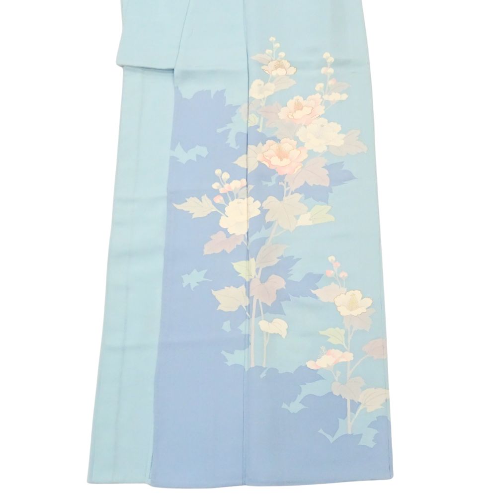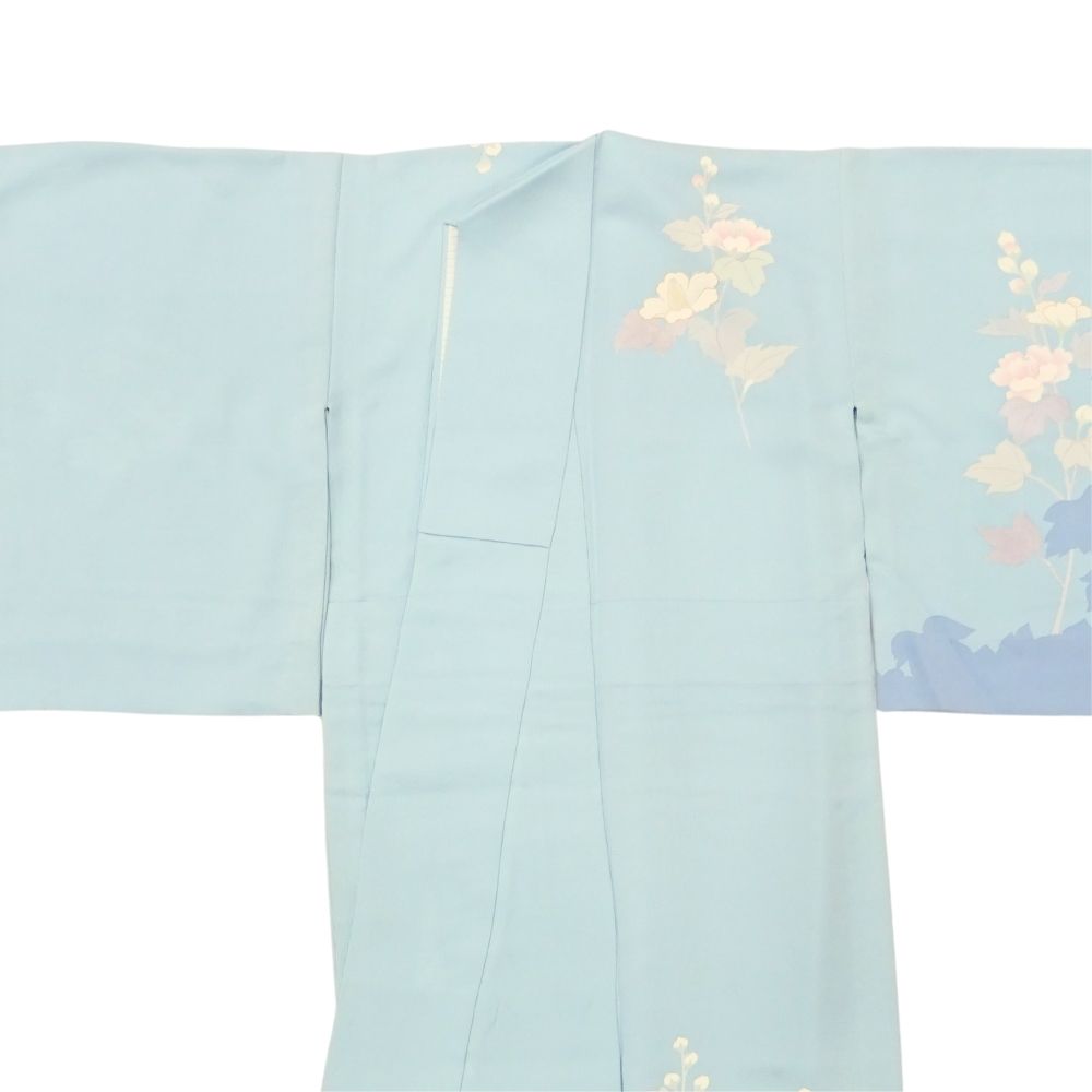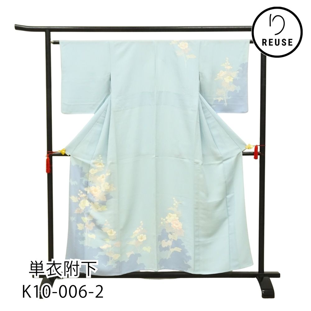 単衣附下 正絹 リユース 中古 水色 芙蓉 花文様 K10-006-2(8050-00626)