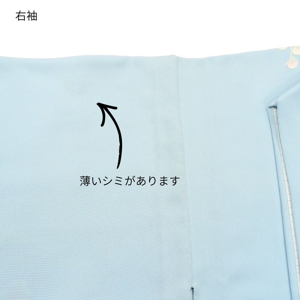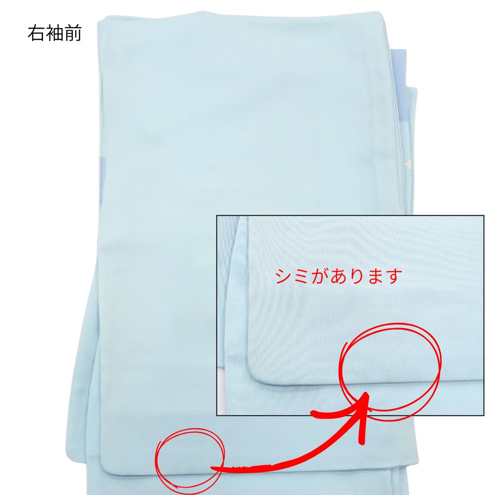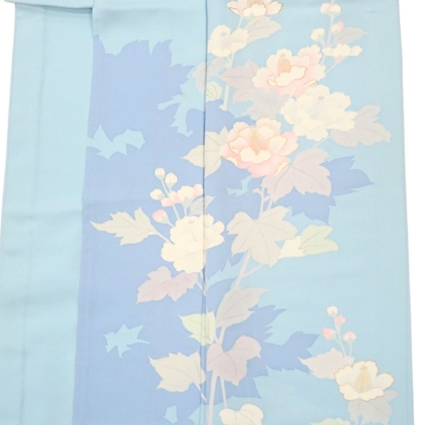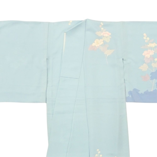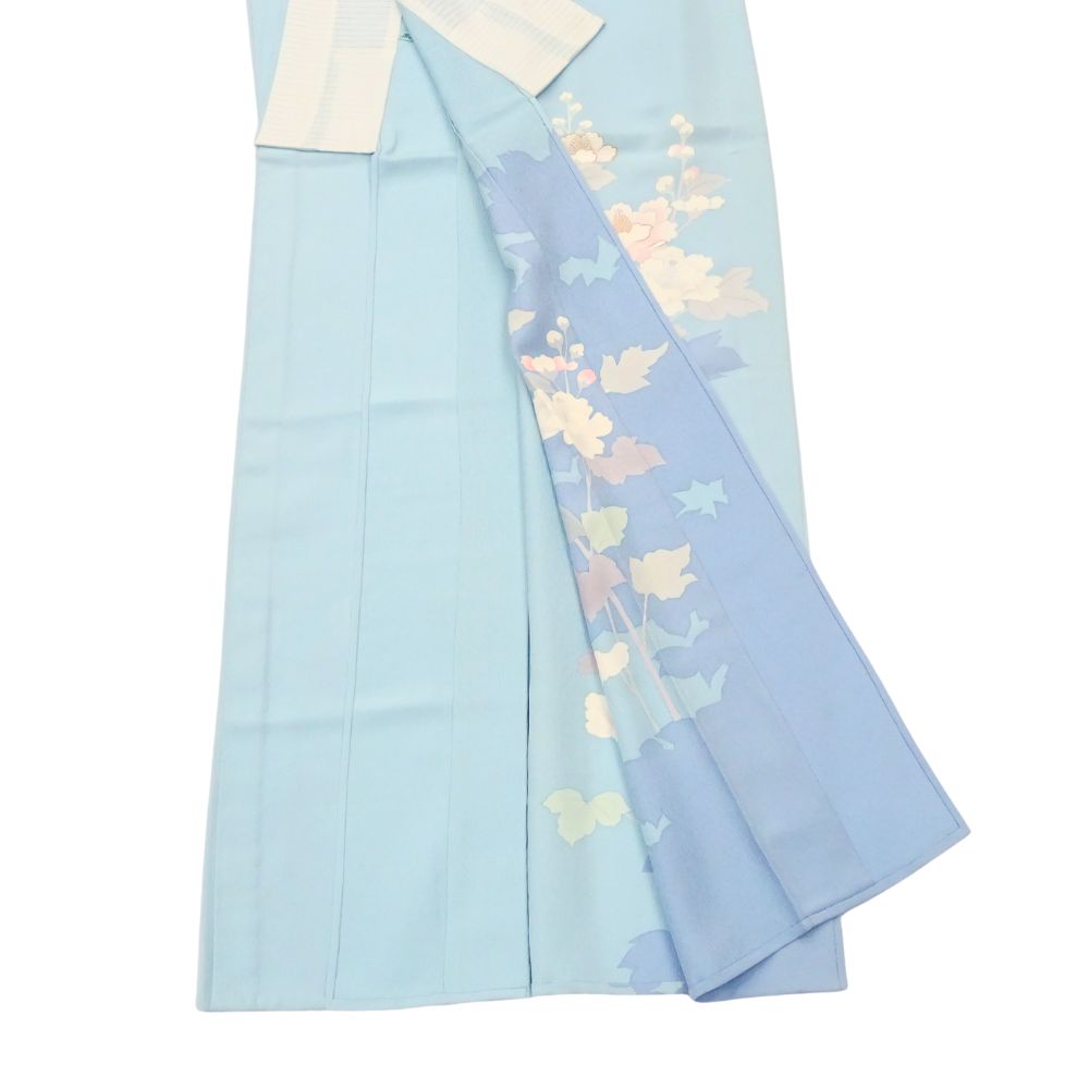 単衣附下 正絹 リユース 中古 水色 芙蓉 花文様 K10-006-2(8050-00626)