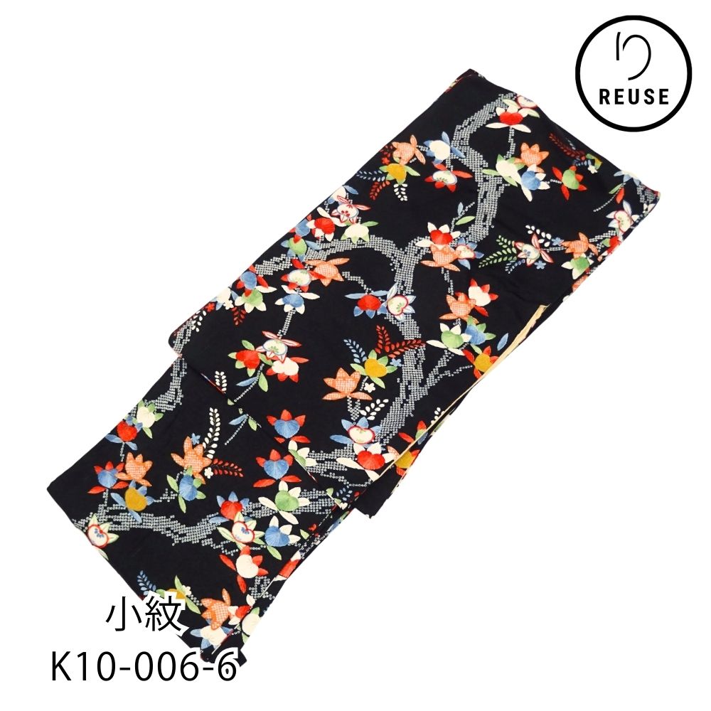小紋 袷 正絹 リユース 中古 黒地 枝垂れ花文様 K10-006-6 (8050-00630)