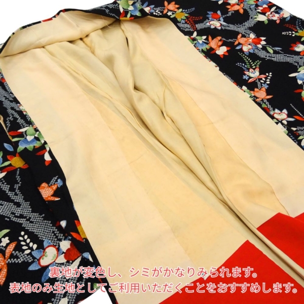 裏地がかなり変色してしまっているため、リメイク素材としてのご利用、または着付けの練習用など、難あり特価品としてご検討いただける方におすすめいたします。