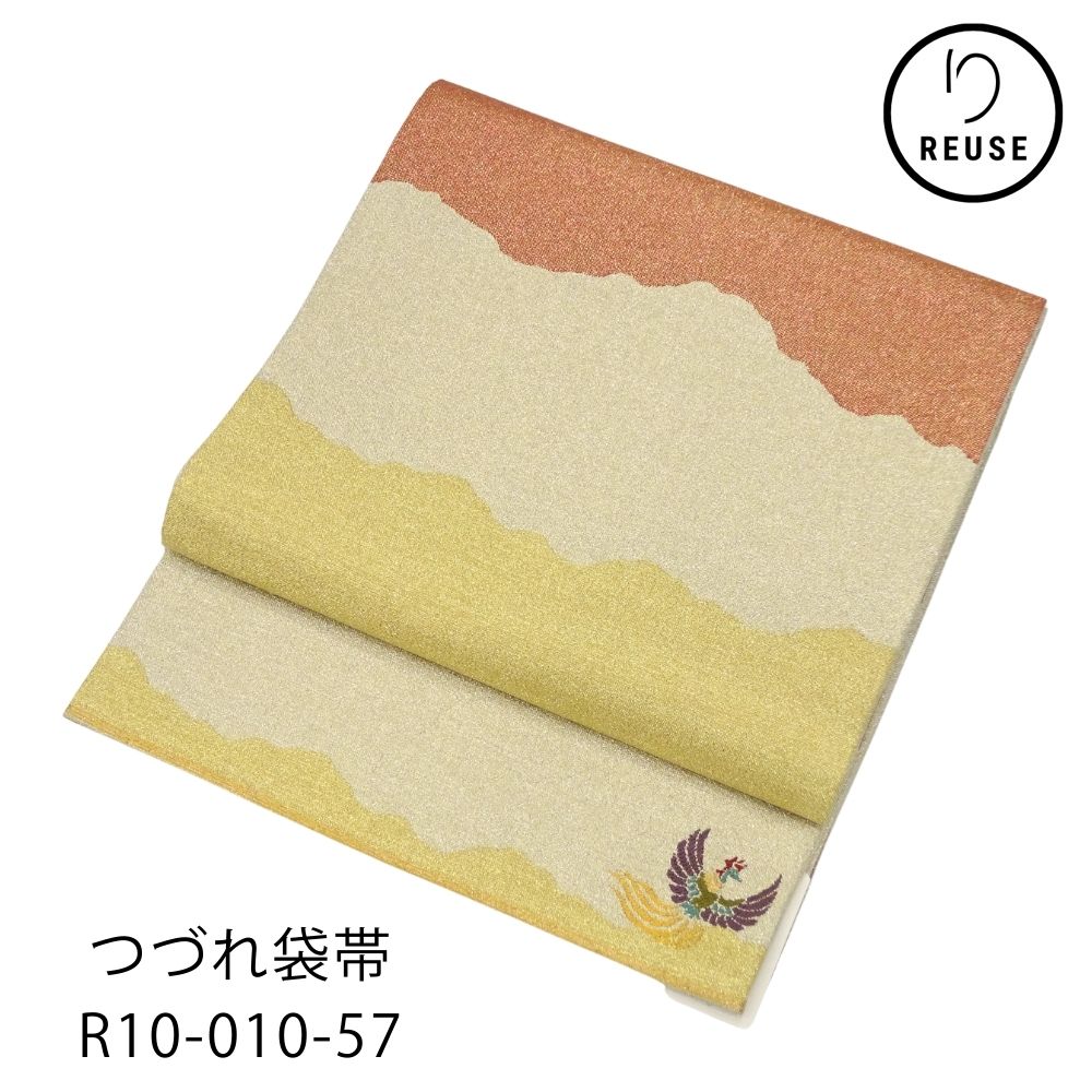 つづれ袋帯 正絹 リユース 中古 山並み文様 鳳凰刺繍 金銀糸 K10-010-57(8050-00705)