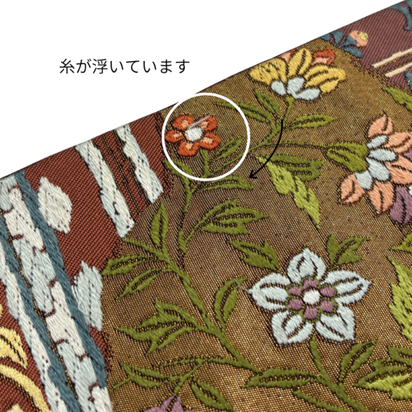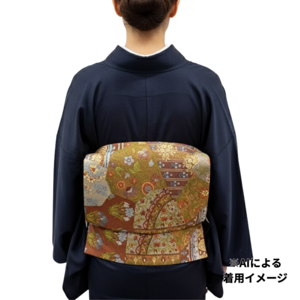 落ち着いた地色ながらも、金糸・色糸が豪華に織り込まれており、格調高い華やかさを感じさせます。