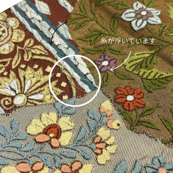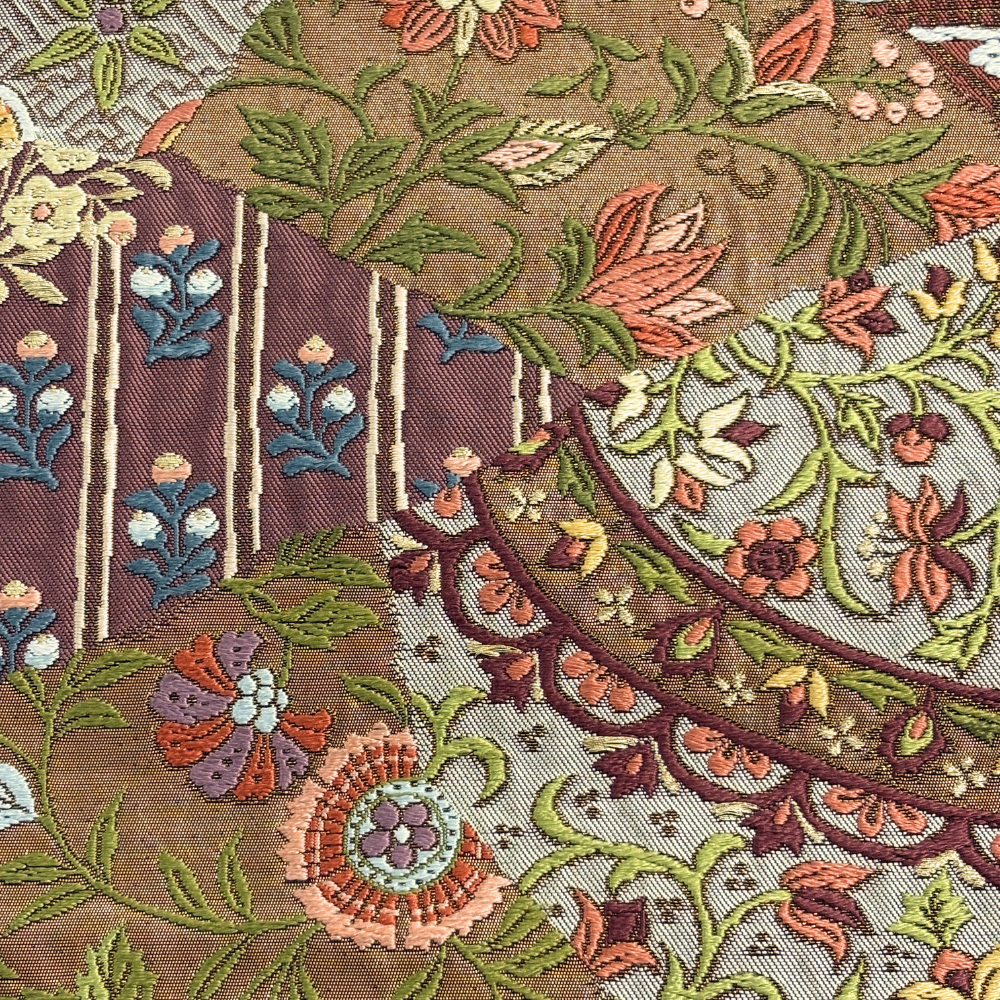 精緻な織りによって、様々な色柄の小さな文様がまるでパッチワークのように表現されており、圧倒的な存在感を放ちます。