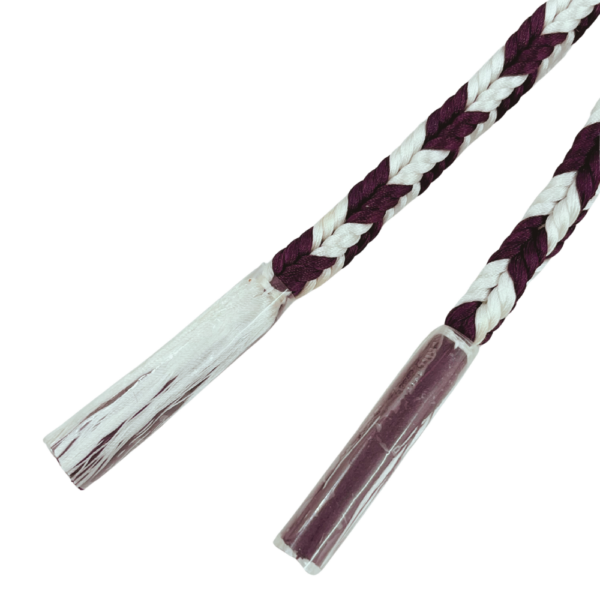 落ち着きのある紫と白のコントラストが美しい帯締め。