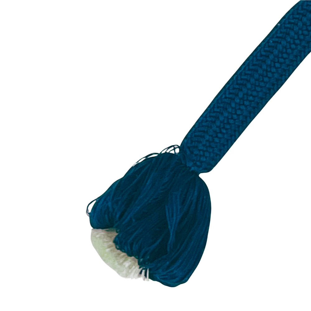 深みのある青と白のグラデーションが美しい、正絹の平組帯締めです。