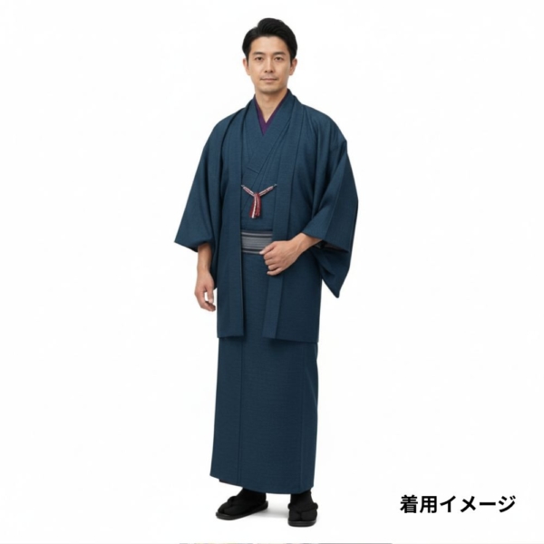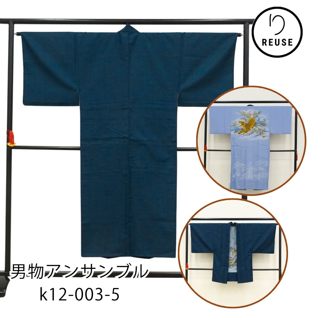 男物アンサンブル リユース 中古 長襦袢付き 紺地 亀甲 k12-003-5 着物・羽織セット 長襦袢龍柄