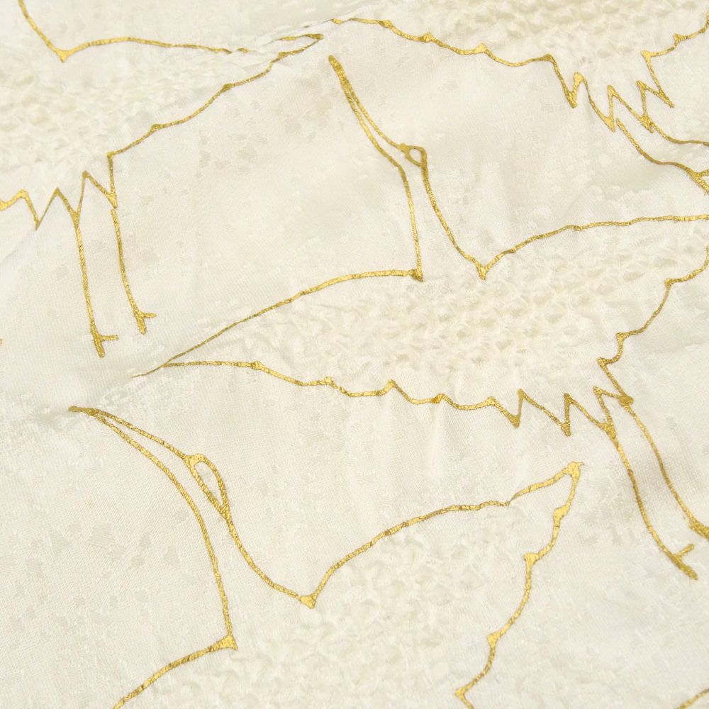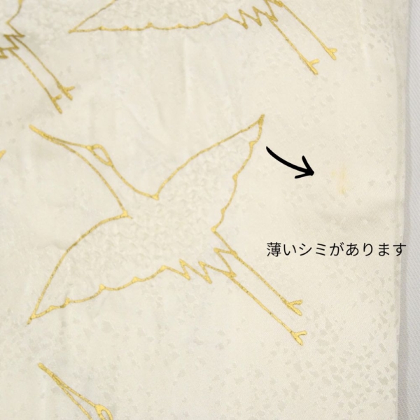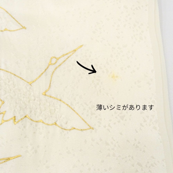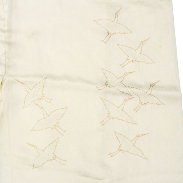 白地に、優雅に舞い踊る飛び鶴がふんだんにあしらわれた、気品溢れる一枚です。