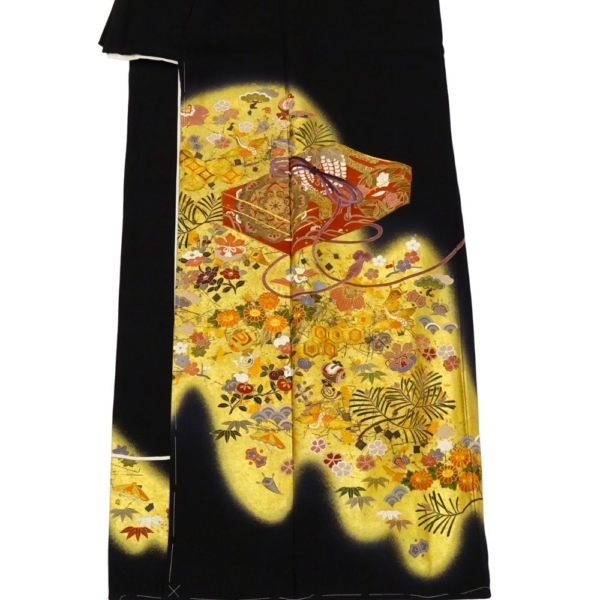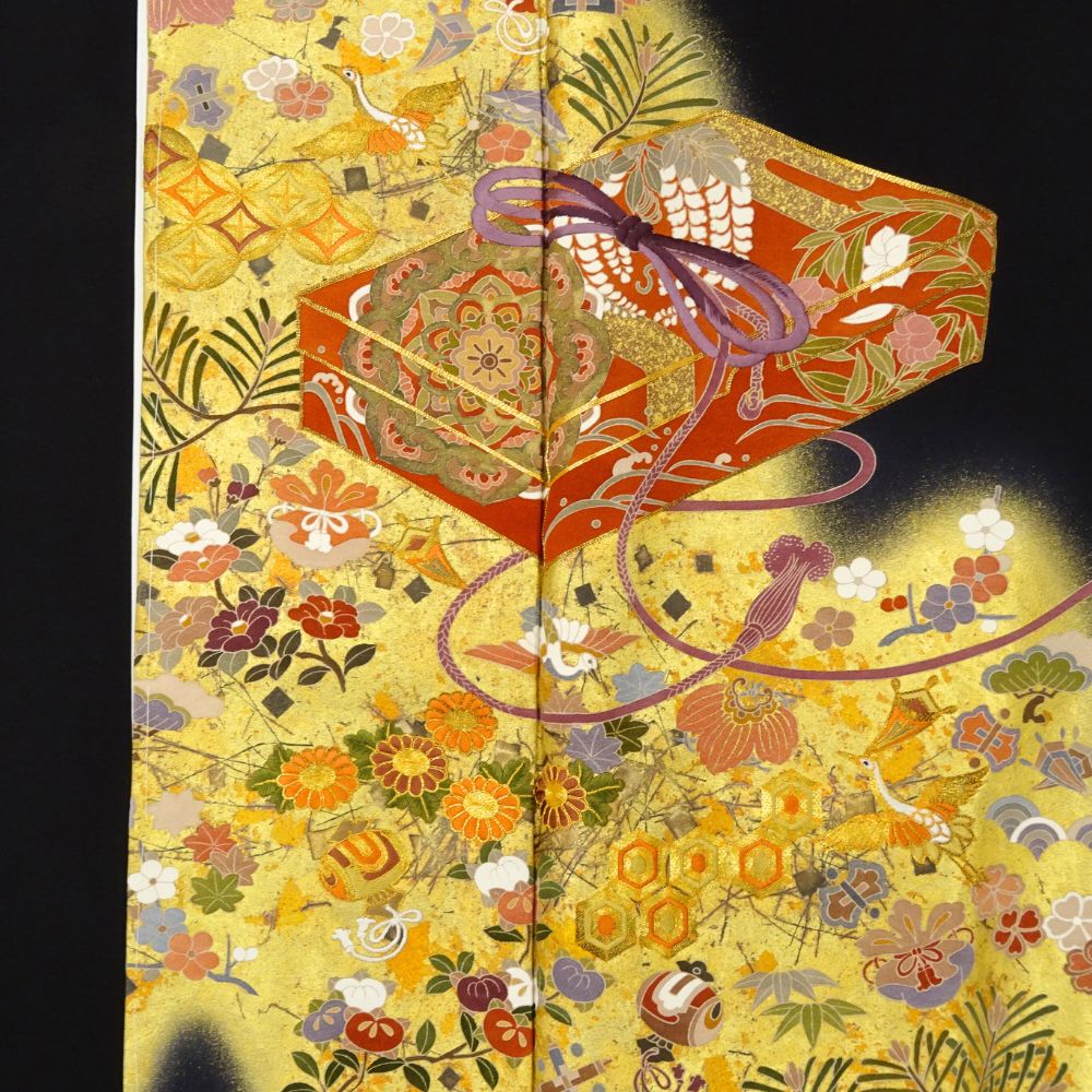 黒留袖 正絹 リユース 中古 比翼付き 金彩 吉祥文様 貝桶 鶴 松竹梅 k12-007-14 結婚式 親族の装い