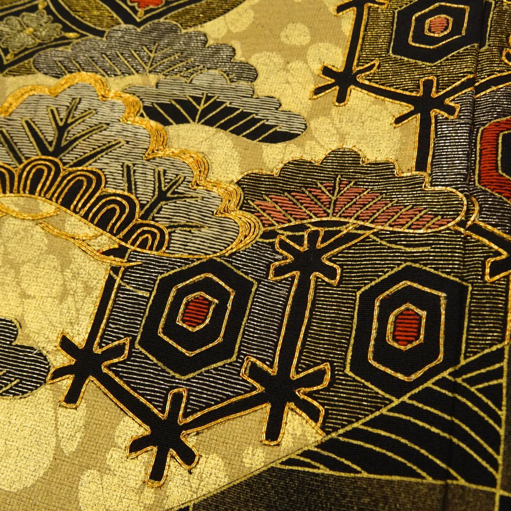 熨斗の中に配された松竹梅、亀甲、波文様など、おめでたいとされる意匠を贅沢に凝縮。