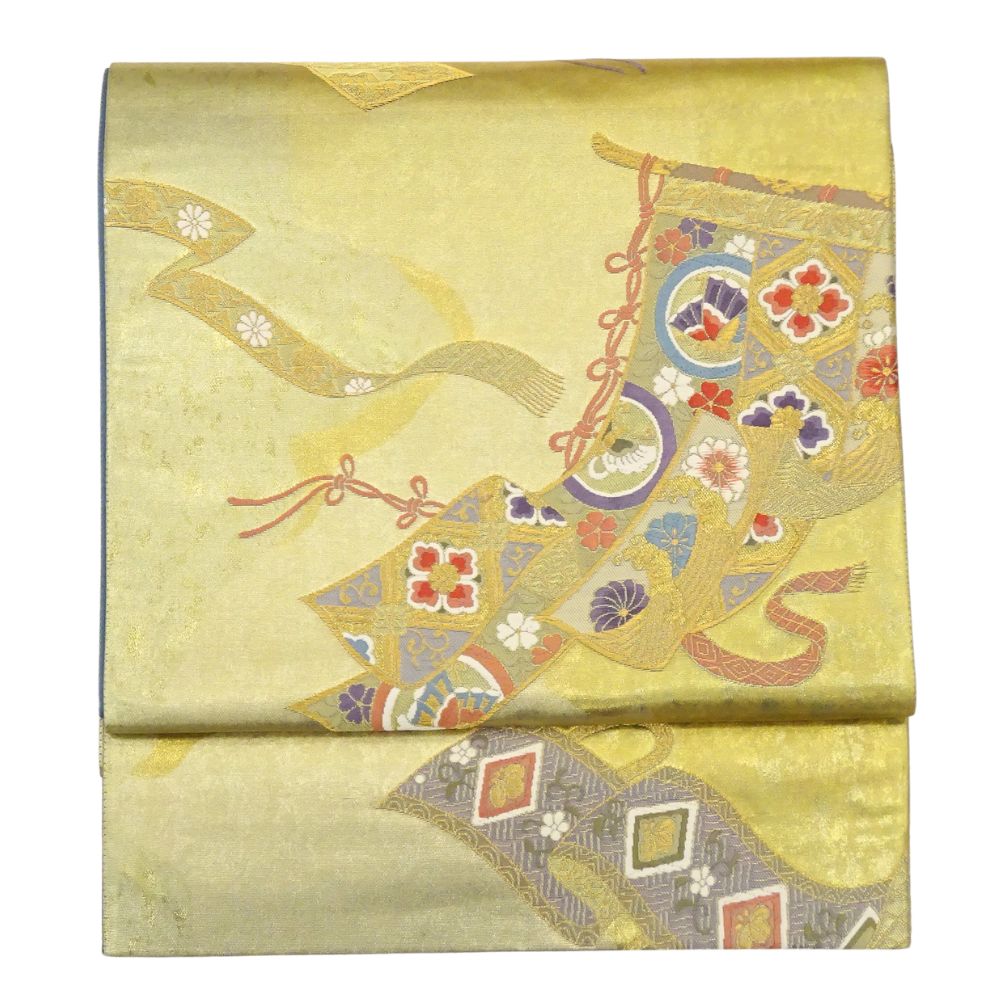 西陣袋帯 正絹 リユース 中古 金地 華やかな宝尽くし文様 k12-009-7(8050-00952) フォーマル 結婚式 七五三 お祝い事