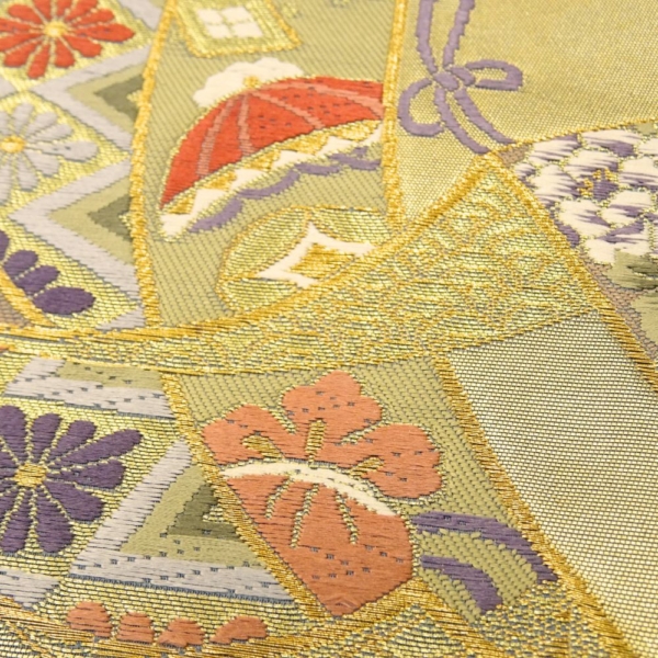 気品あるゴールドベースのため、訪問着や付け下げ、色無地など、フォーマルなお着物と相性抜群です。