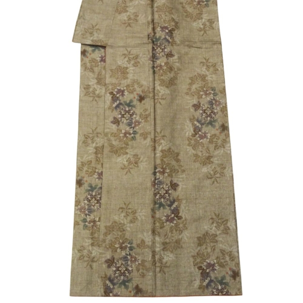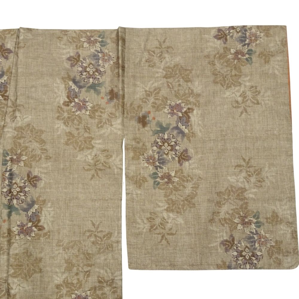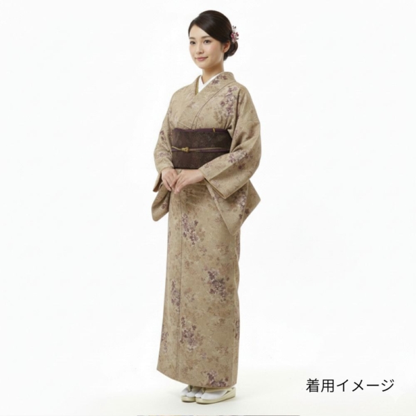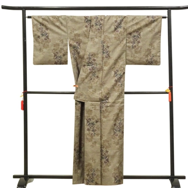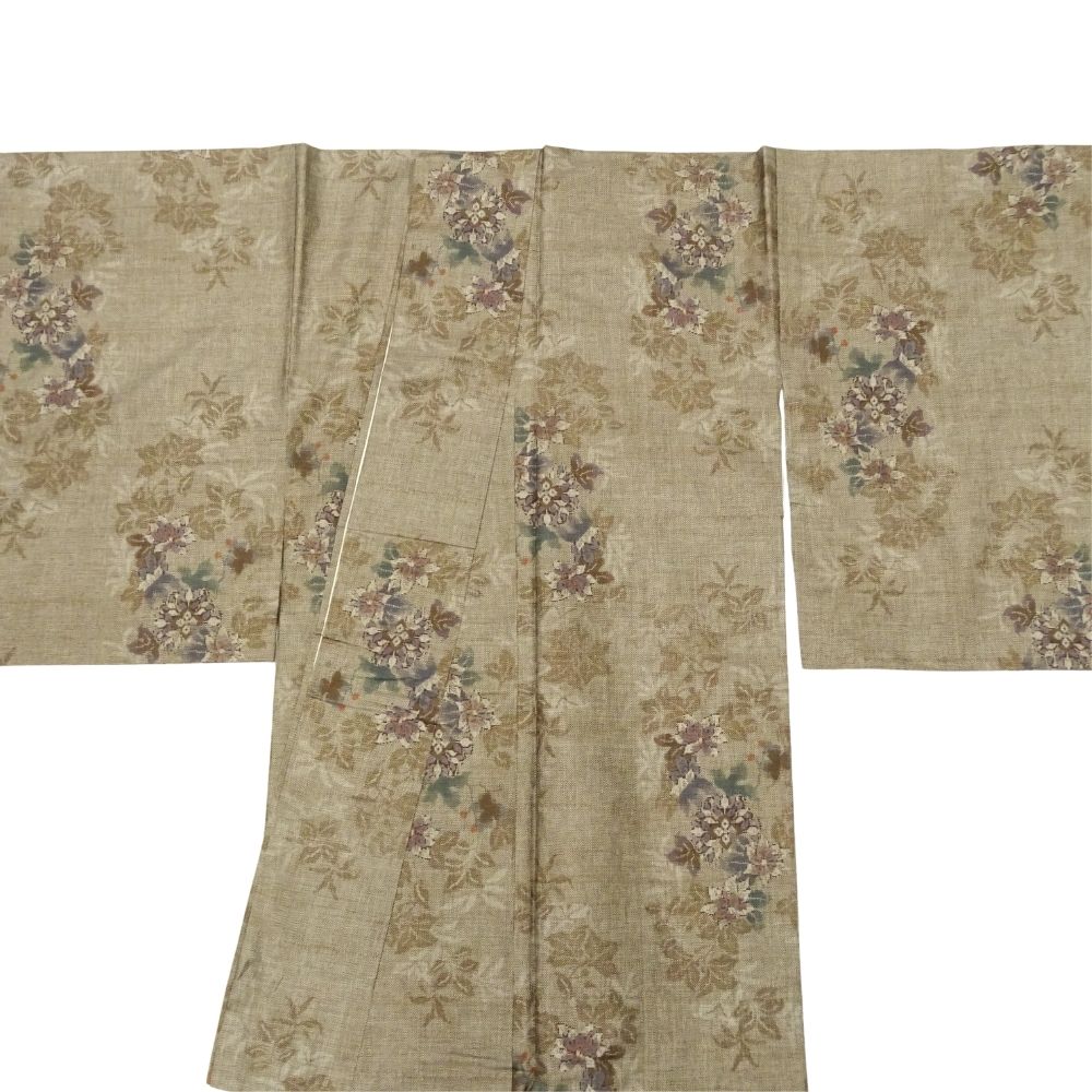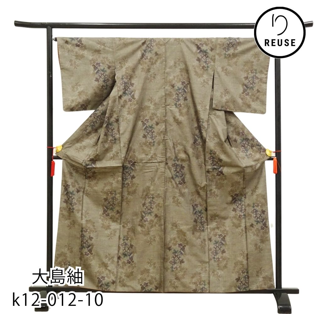 大島紬 正絹 リユース 中古 9マルキ 泥染め調 誰ヶ袖草花文様 ベージュ k12-012-10 (8050-00963) ベージュ 茶 袷 証紙なし 逸品