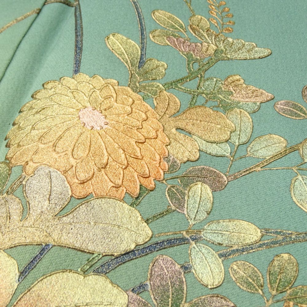 お色味は、落ち着きの中にも華やかさが宿る、透明感のある青磁色。
