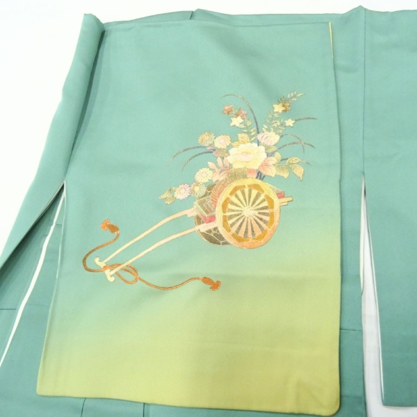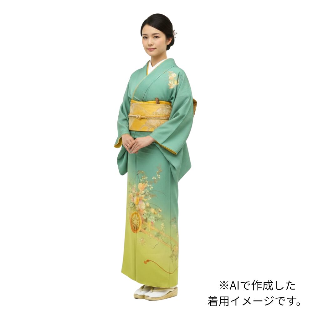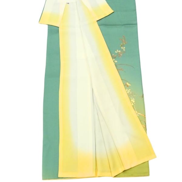 裾から立ち上がる柔らかな黄緑のぼかしが、全体を明るく若々しい印象に引き立てています。