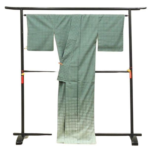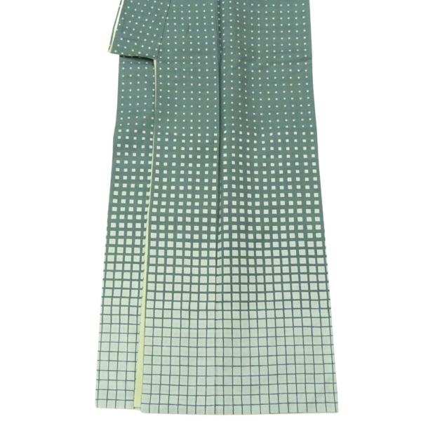 落ち着いたグリーンからミントグリーンのような淡いお色への移ろいが、着姿をすらりとスマートに演出します。