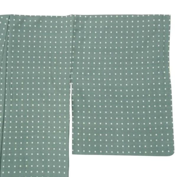 小さな四角形が重なり合う格子文様は、規則正しくも手仕事の奥行きを感じさせ、見る角度によって表情を変えます。