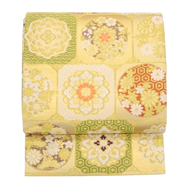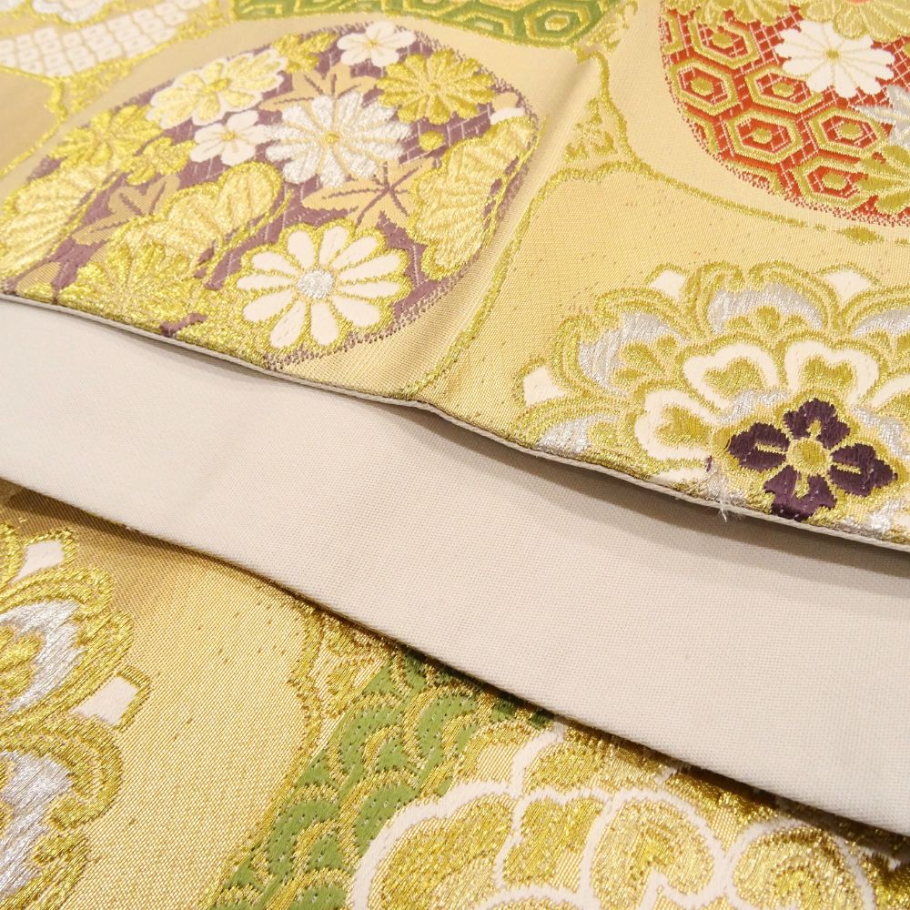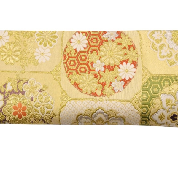 礼装用袋帯 正絹 リユース 金地 華文 六角花菱 蜀江文様 k12-013-4 (8050-00966) フォーマル 結婚式 披露宴 訪問着 留袖 付下げ