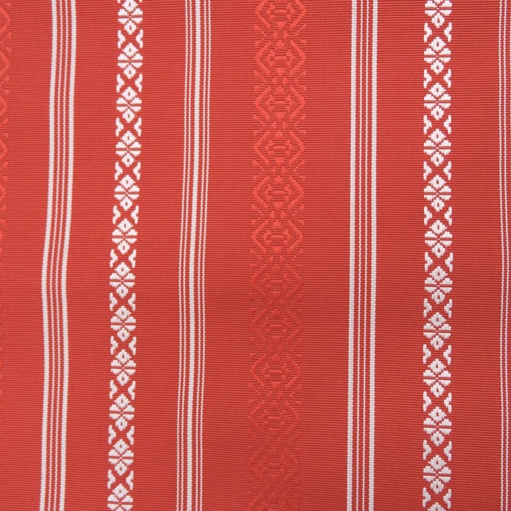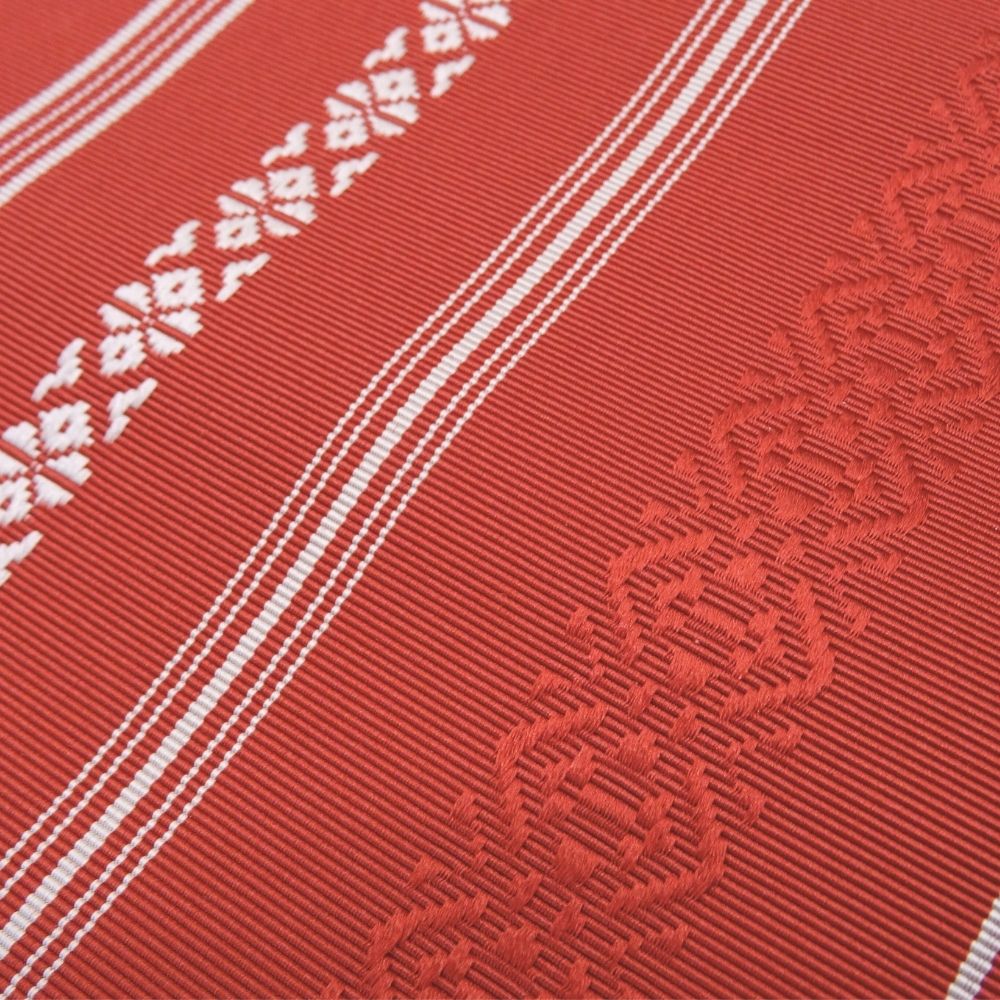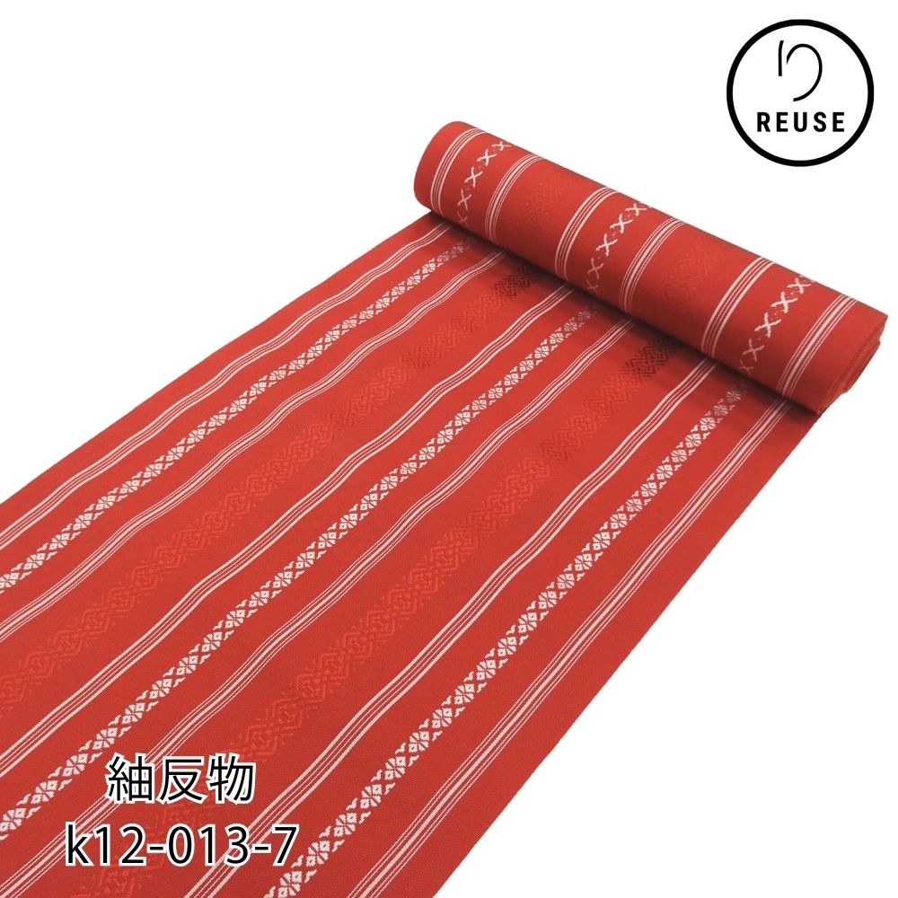 博多八寸帯反物 リユース 赤 朱色 本場筑前博多織 献上柄 独鈷 華皿 k12-013-7 (8050-00969) カジュアル 紬 小紋 街着 普段着