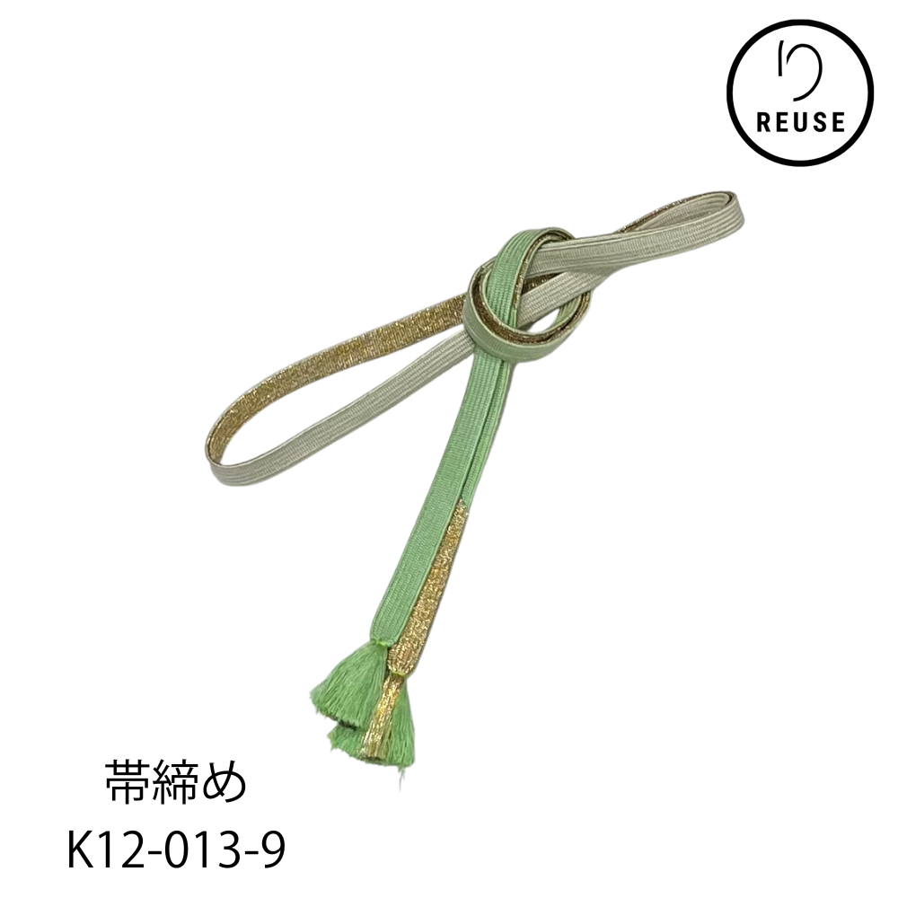 帯締め 正絹 平組 金糸 若草色 リユース 中古 K12-013-9 ★