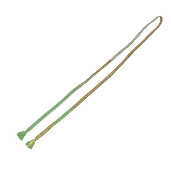 春の芽吹きを感じさせる爽やかな若草色に、繊細な金糸をあしらった、気品漂う帯締めです。