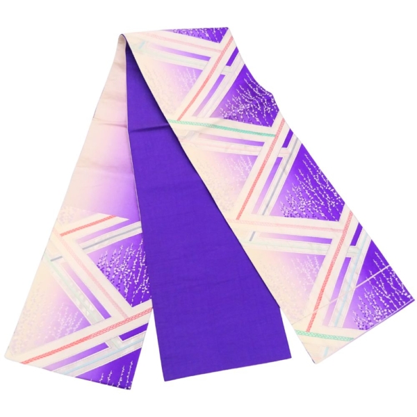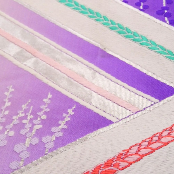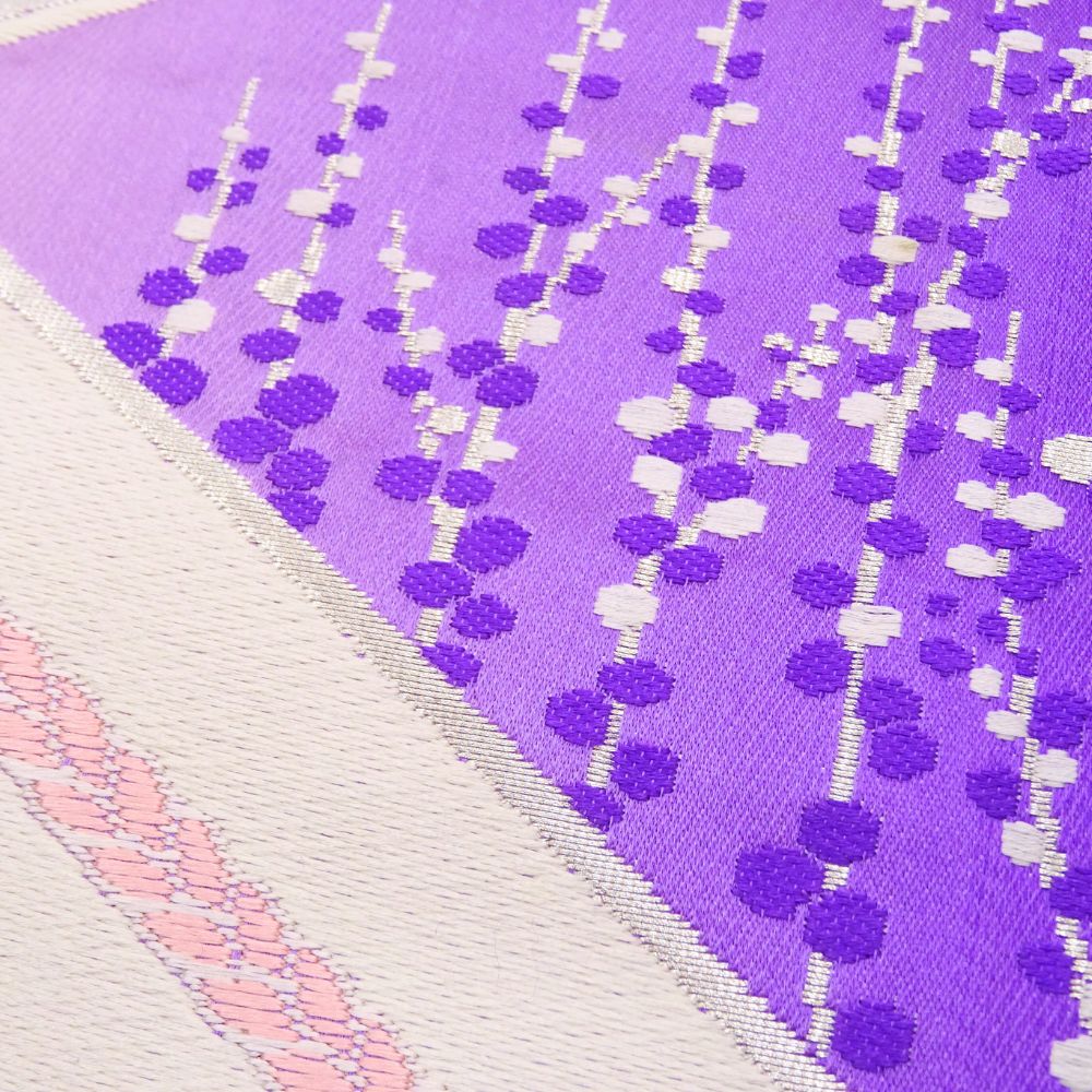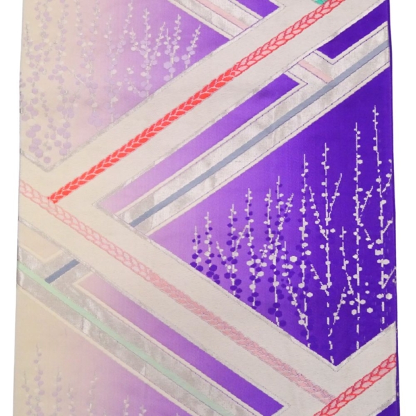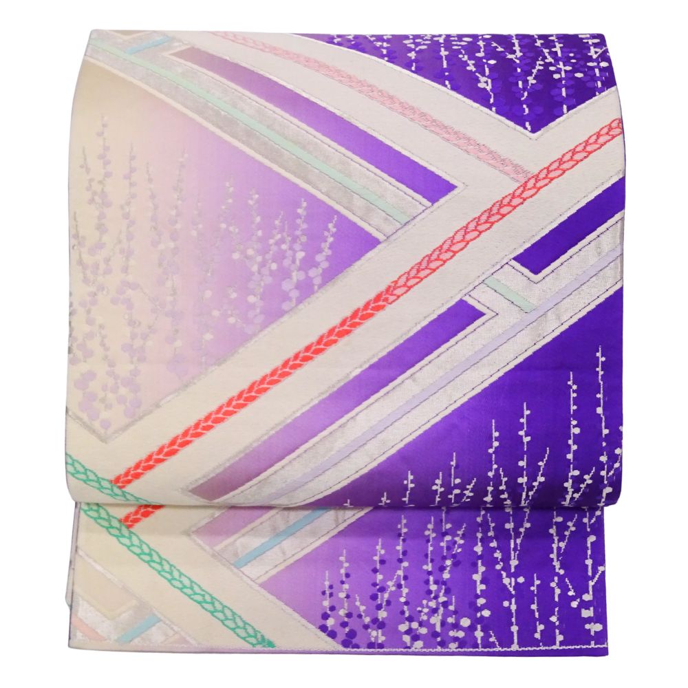 鮮やかな紫のぼかしが美しく、帯全体に立体感と奥行きを与えています。