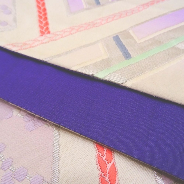 振袖用袋帯 正絹 リユース 紫 ぼかし 幾何学 k12-017-3 六通柄 成人式 結婚式 卒業式 パーティー フォーマル
