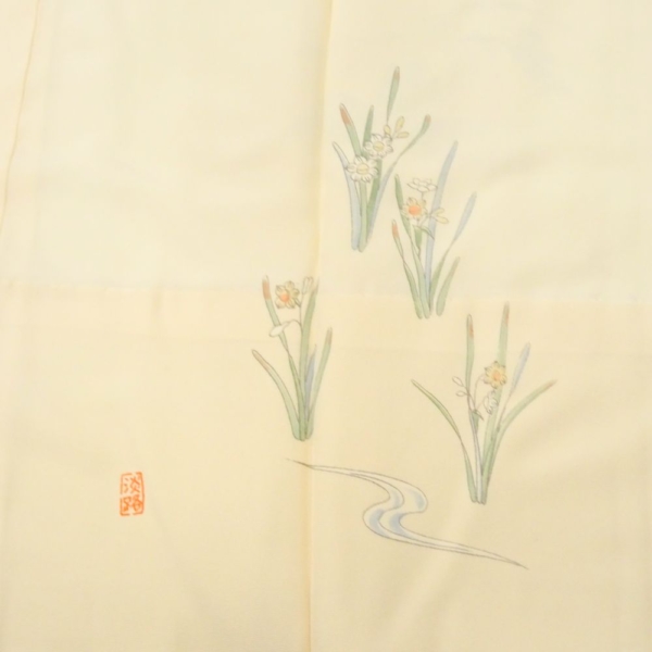 しっとりと肌馴染みの良い上質な正絹地は、優雅な光沢を湛える淡い象牙色。