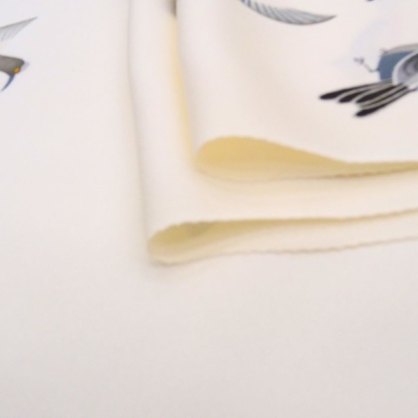 上品なアイボリーの地に、愛らしい小鳥が描かれた、正絹の小紋反物です。