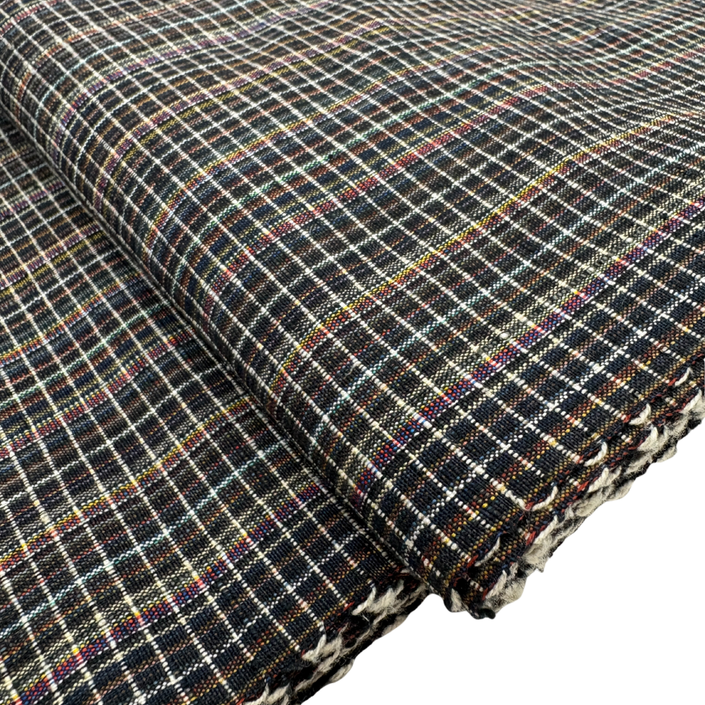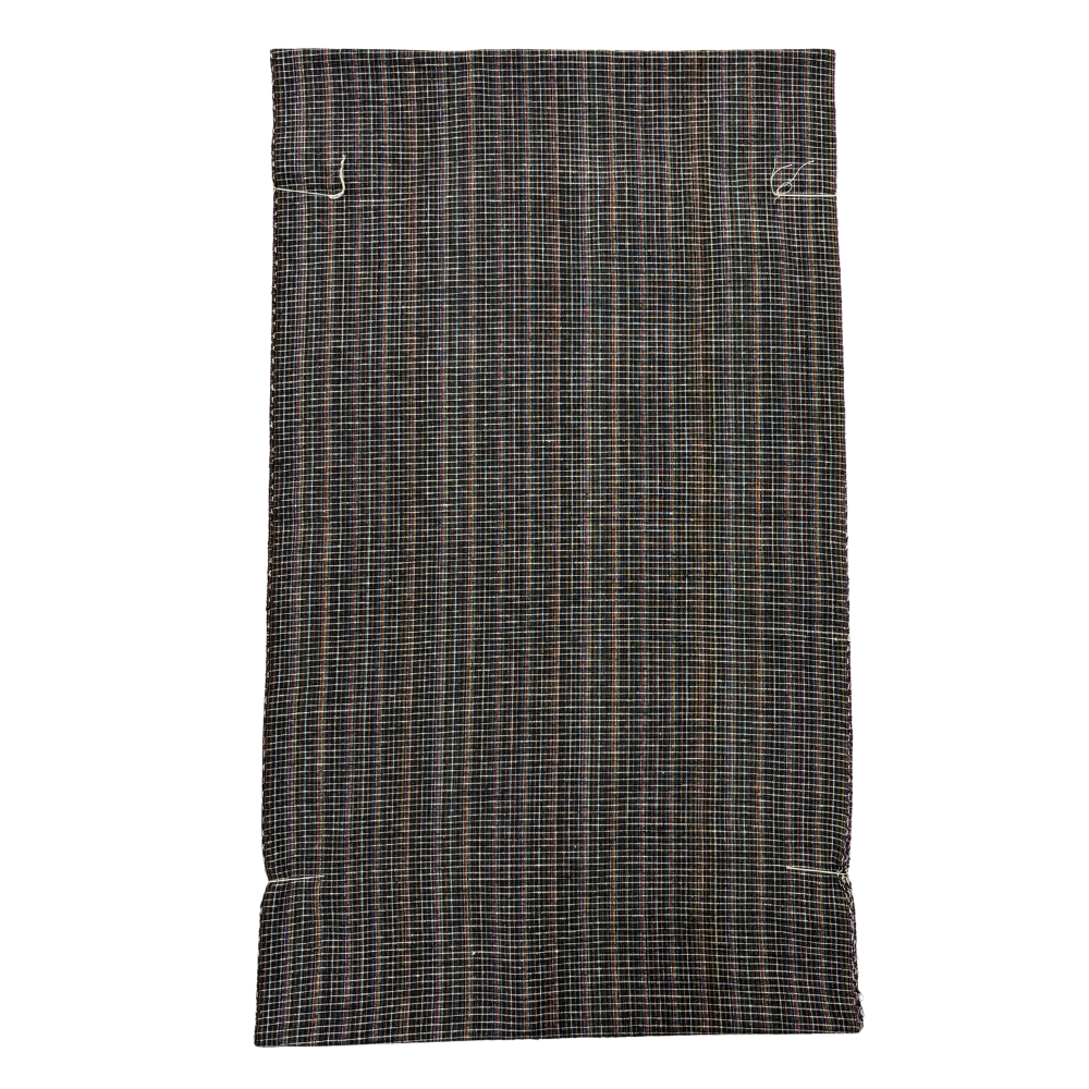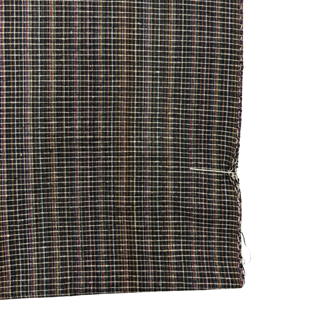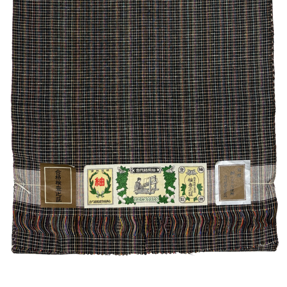 古代結城紬反物 正絹 リユース 石毛結城紬 証紙付き 黒×マルチカラー格子柄 未仕立て k12-025-001