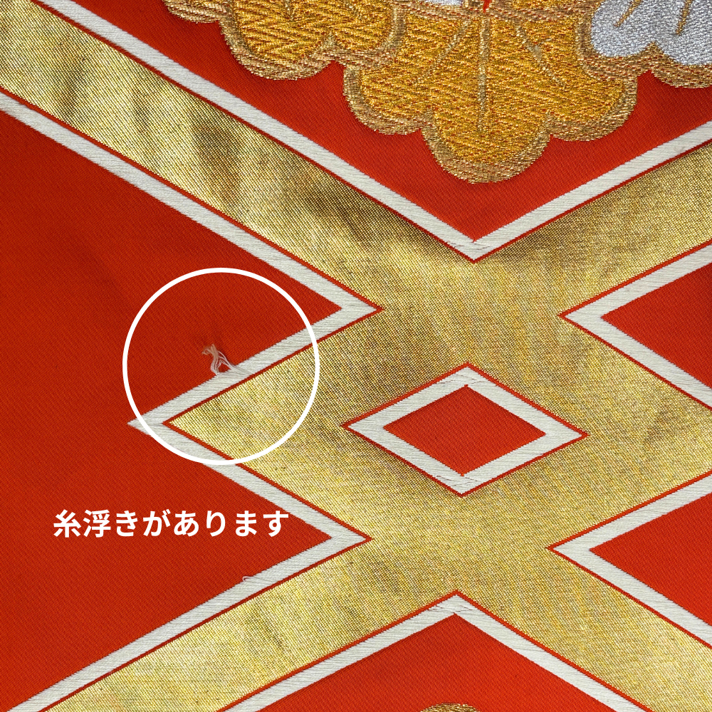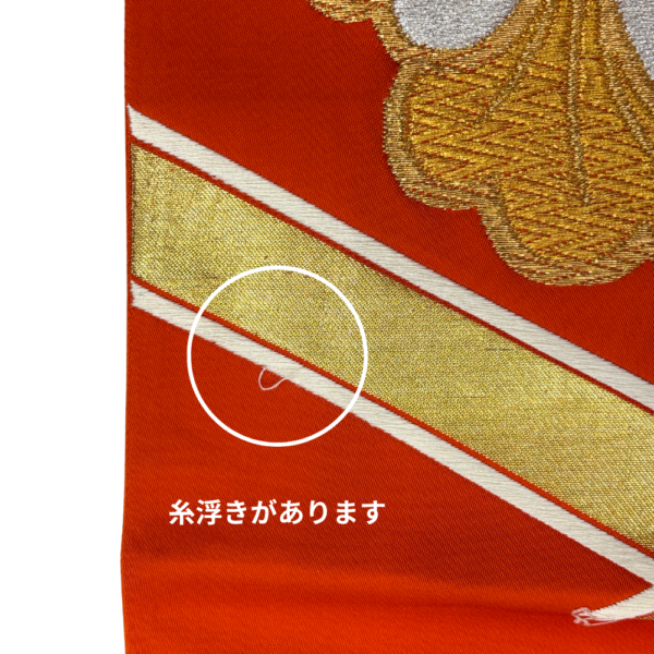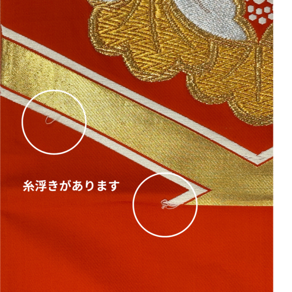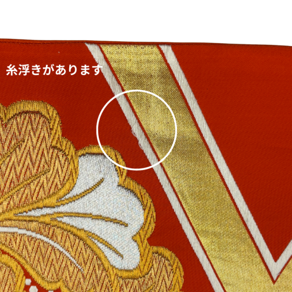金糸・白糸の糸浮き(ほつれ)が数箇所見受けられます。