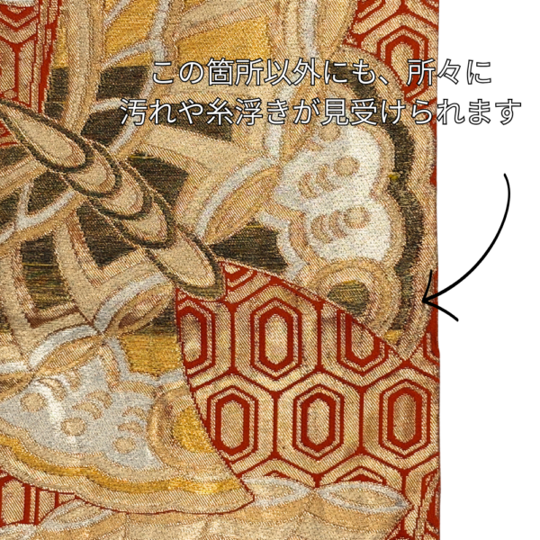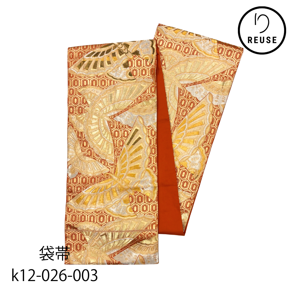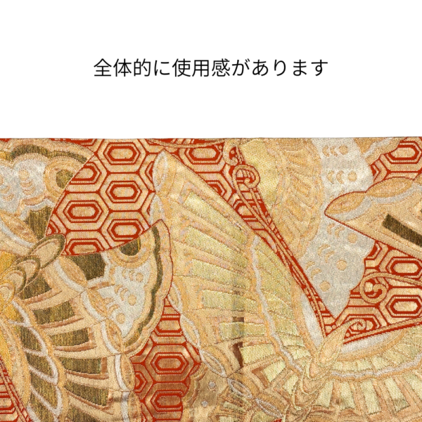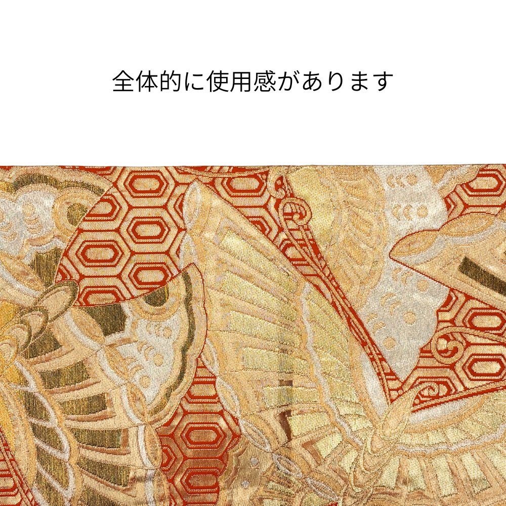 袋帯 正絹 リユース 中古 六通柄 朱色 金銀糸 蝶 亀甲文様 振袖 訪問着 礼装用 k12-026-003