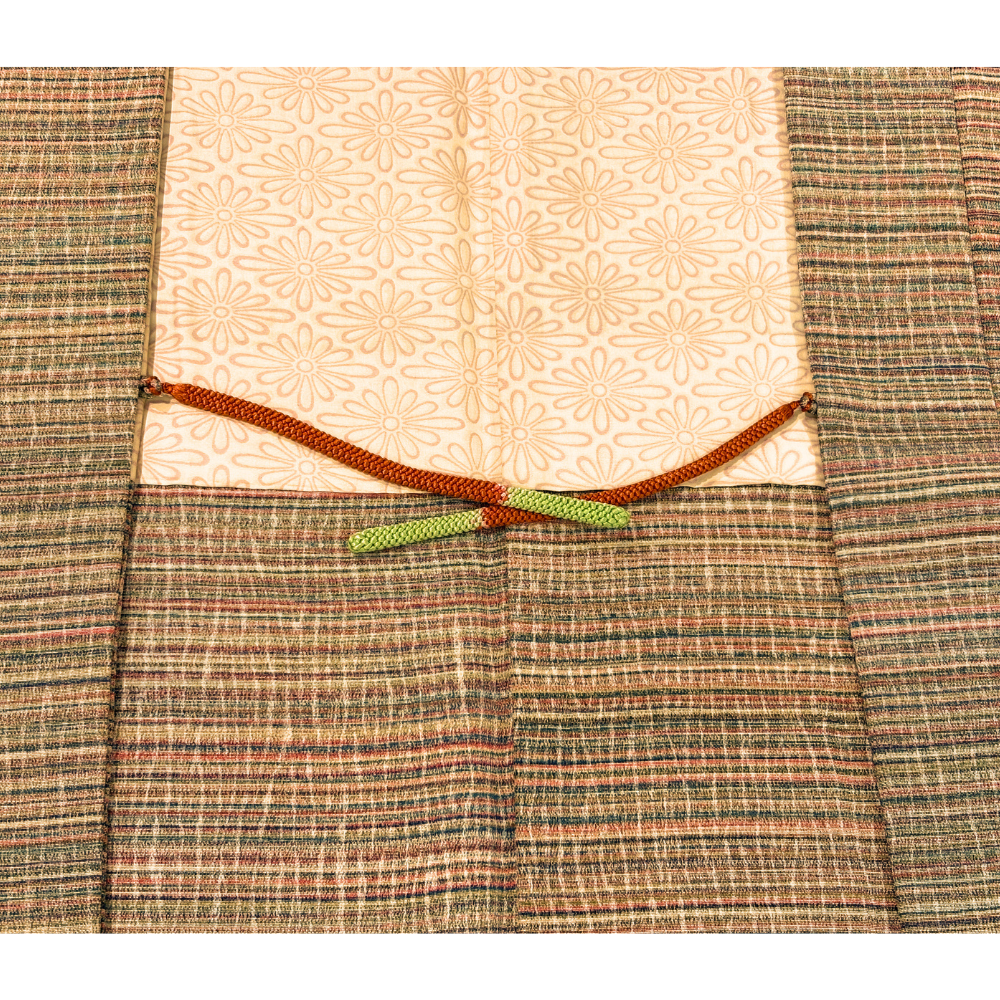 羽織 袷 正絹 リユース 中古 横段 縞模様 暖色系 マルチカラー m026-7R(8050-00179)