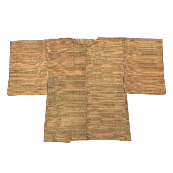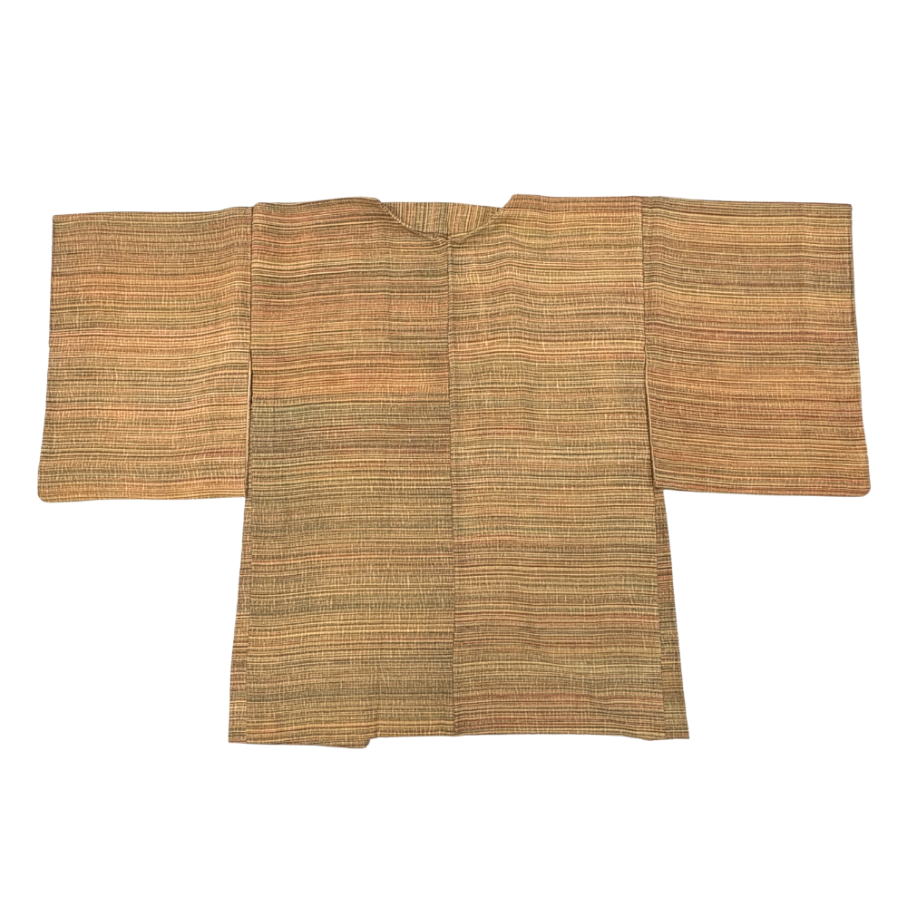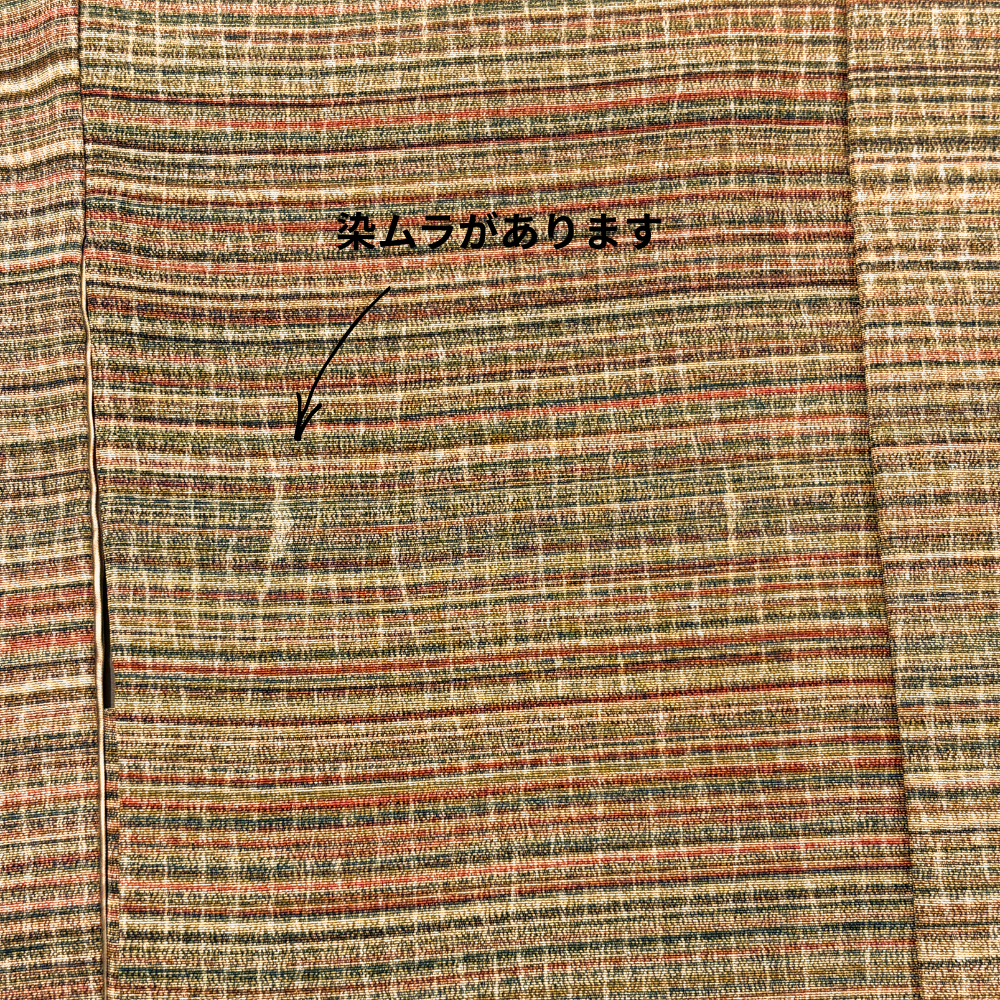 羽織 袷 正絹 リユース 中古 横段 縞模様 暖色系 マルチカラー m026-7R(8050-00179)