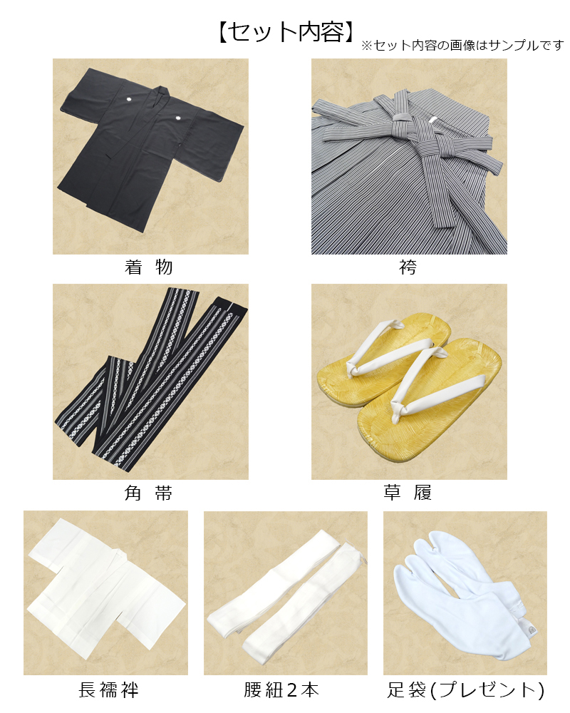 着物・袴・長襦袢・角帯・雪駄・腰紐2本・足袋(プレゼント)