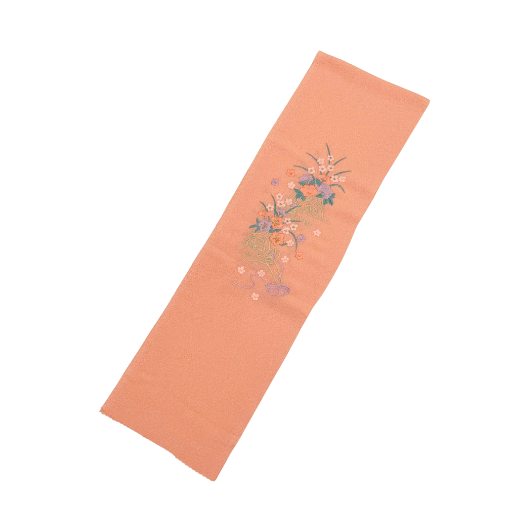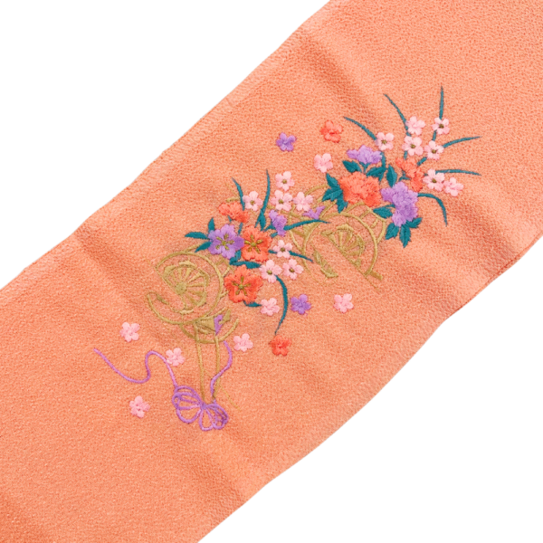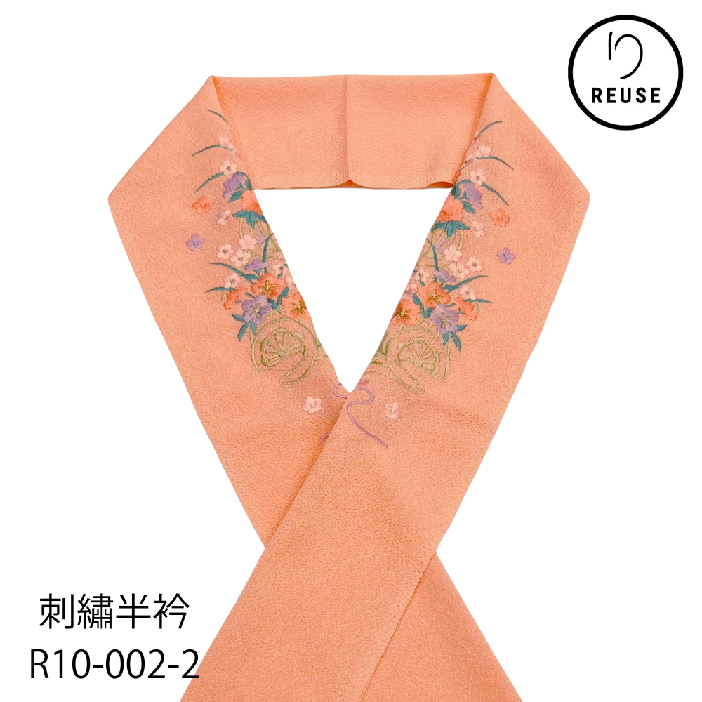 刺繍半襟 リユース ピーチピンク 花車と四季の花々 R10-002-2(8050-00585)★