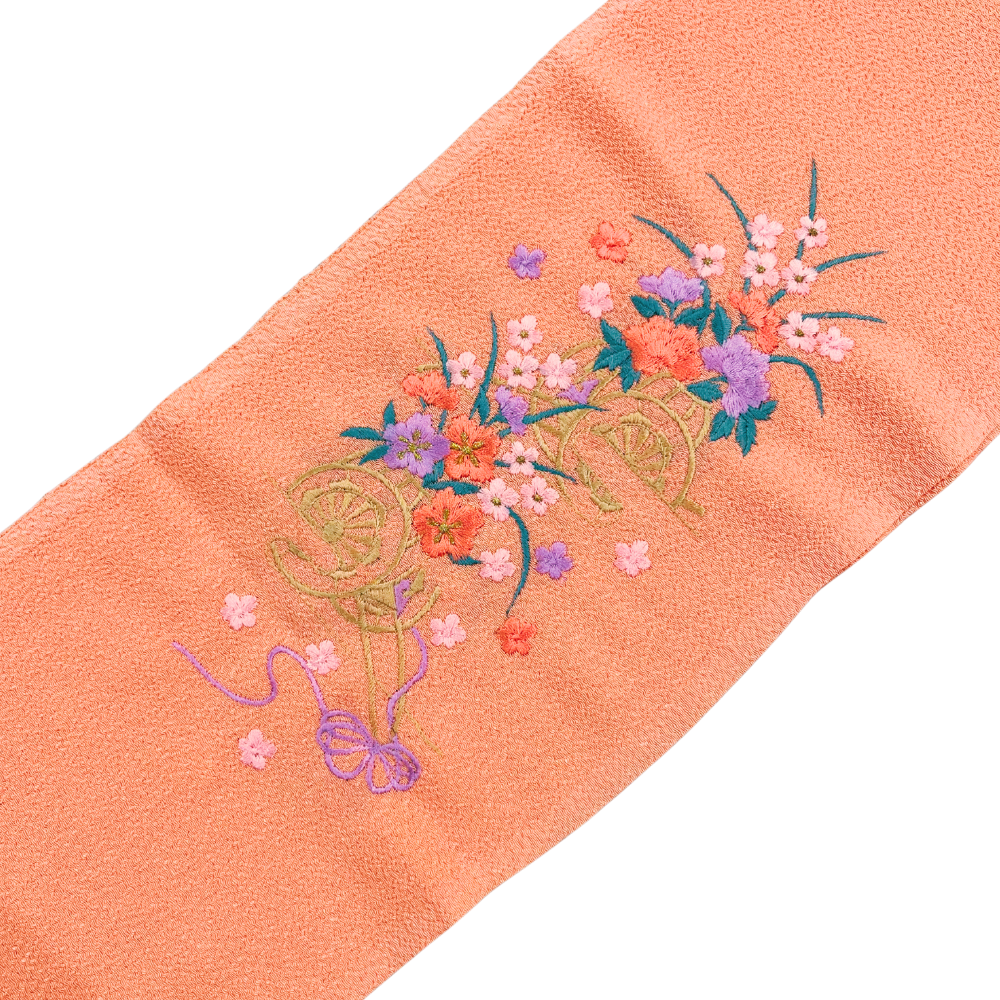 ピーチピンクは肌馴染みが良く、様々な色の着物と合わせやすい万能カラーです。