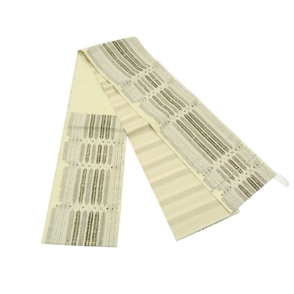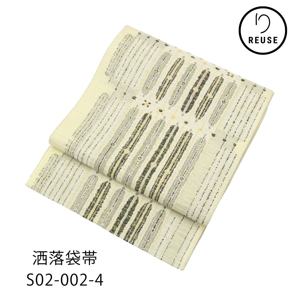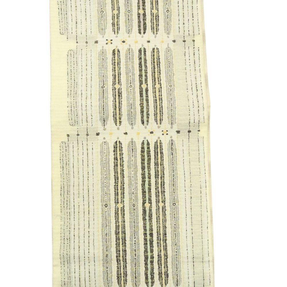 洒落袋帯 正絹 リユース 中古 紬地 アイボリー モダン 抽象模様 六通柄 S02-002-4(8050-00608) カジュアル 着物 お洒落
