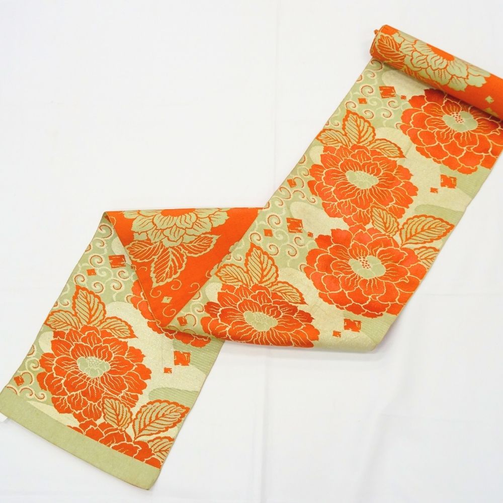 八寸名古屋帯 正絹 リユース 未仕立て 中古 華やか大花文様 V003-7(8050-00359)★