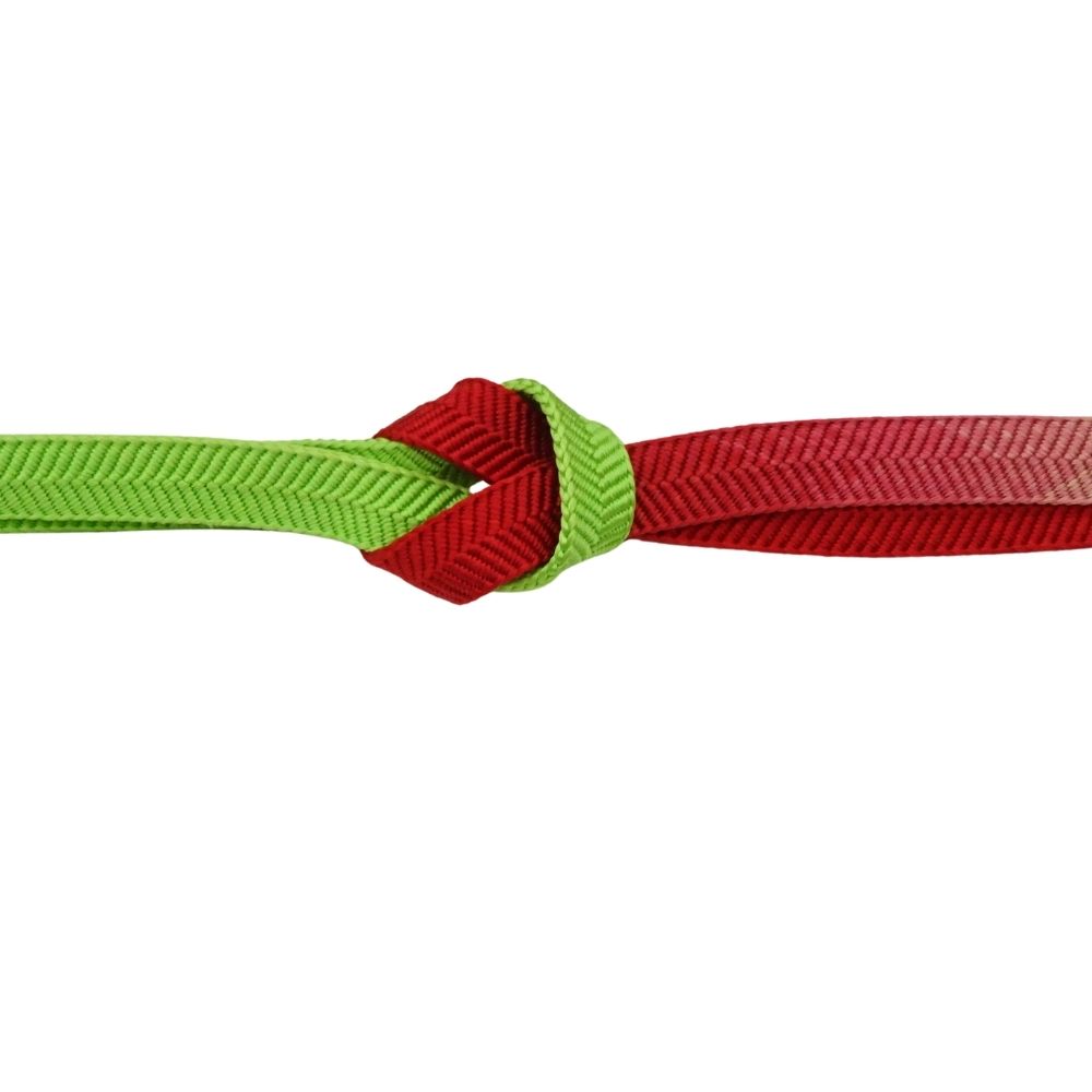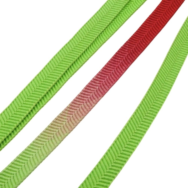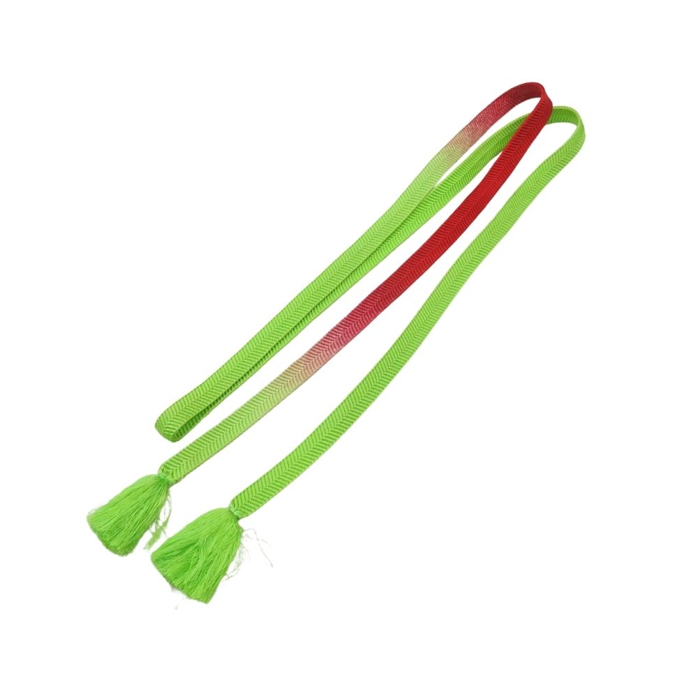 鮮やかな黄緑色と赤のグラデーションが目を引く、お洒落な帯締めです。