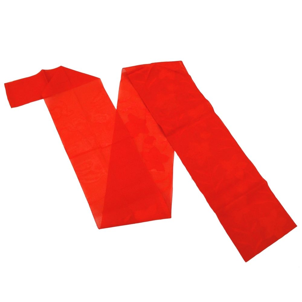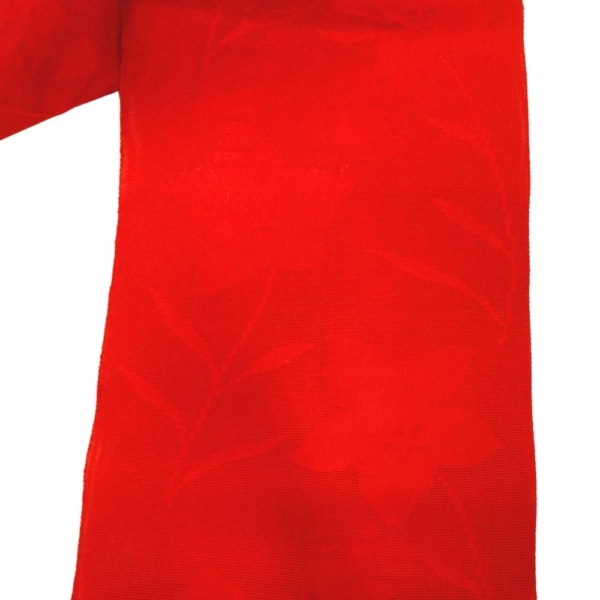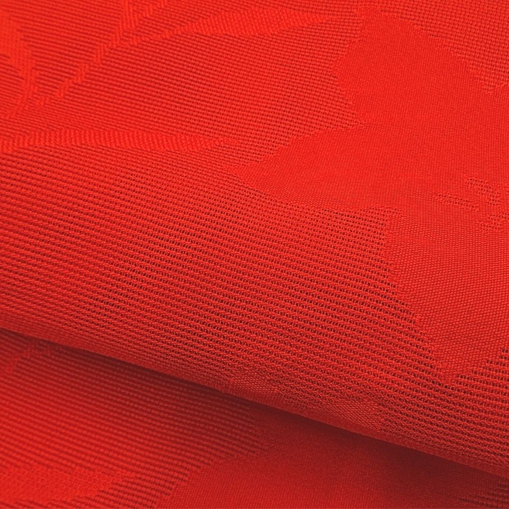 絽 名古屋帯 正絹 リユース 中古 鮮やかレッド 地紋入り V10-003-7