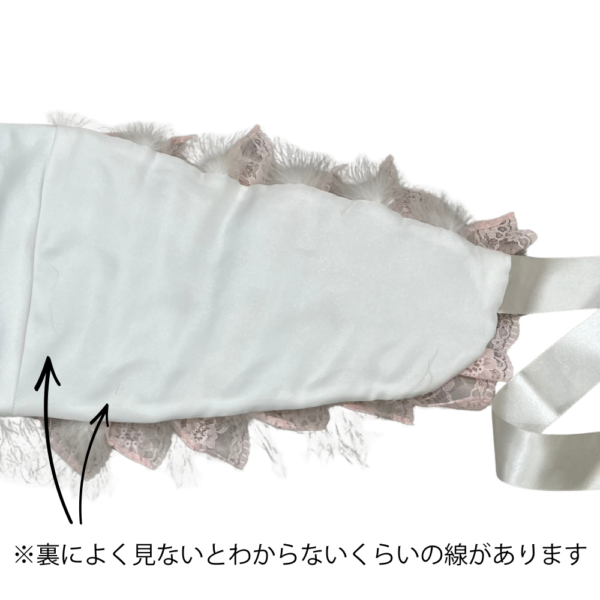 裏地のサテン部分に、よく見ないとわからない程度の薄い線がありますが、着用時には全く見えない箇所のため、安心してお使いいただけます。