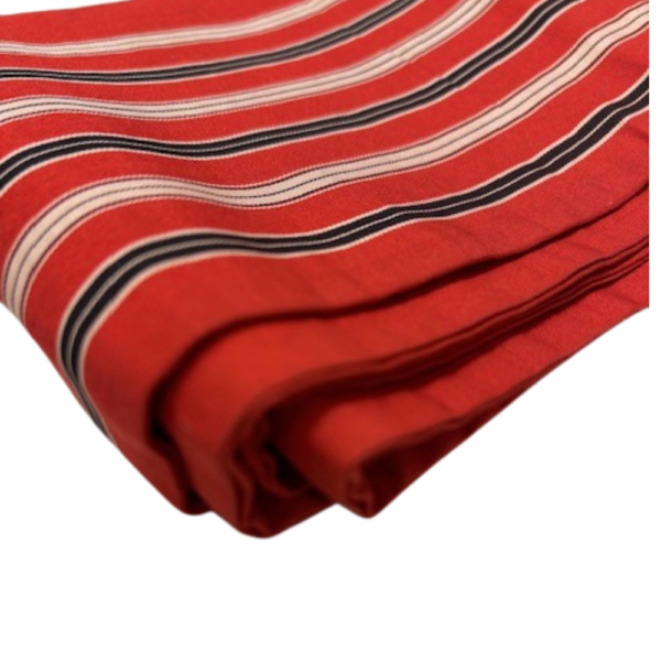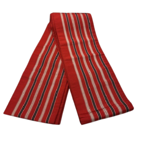 半巾帯 粋な赤×モダンストライプ 浴衣 小紋 紬 リユース 中古Y022 ★